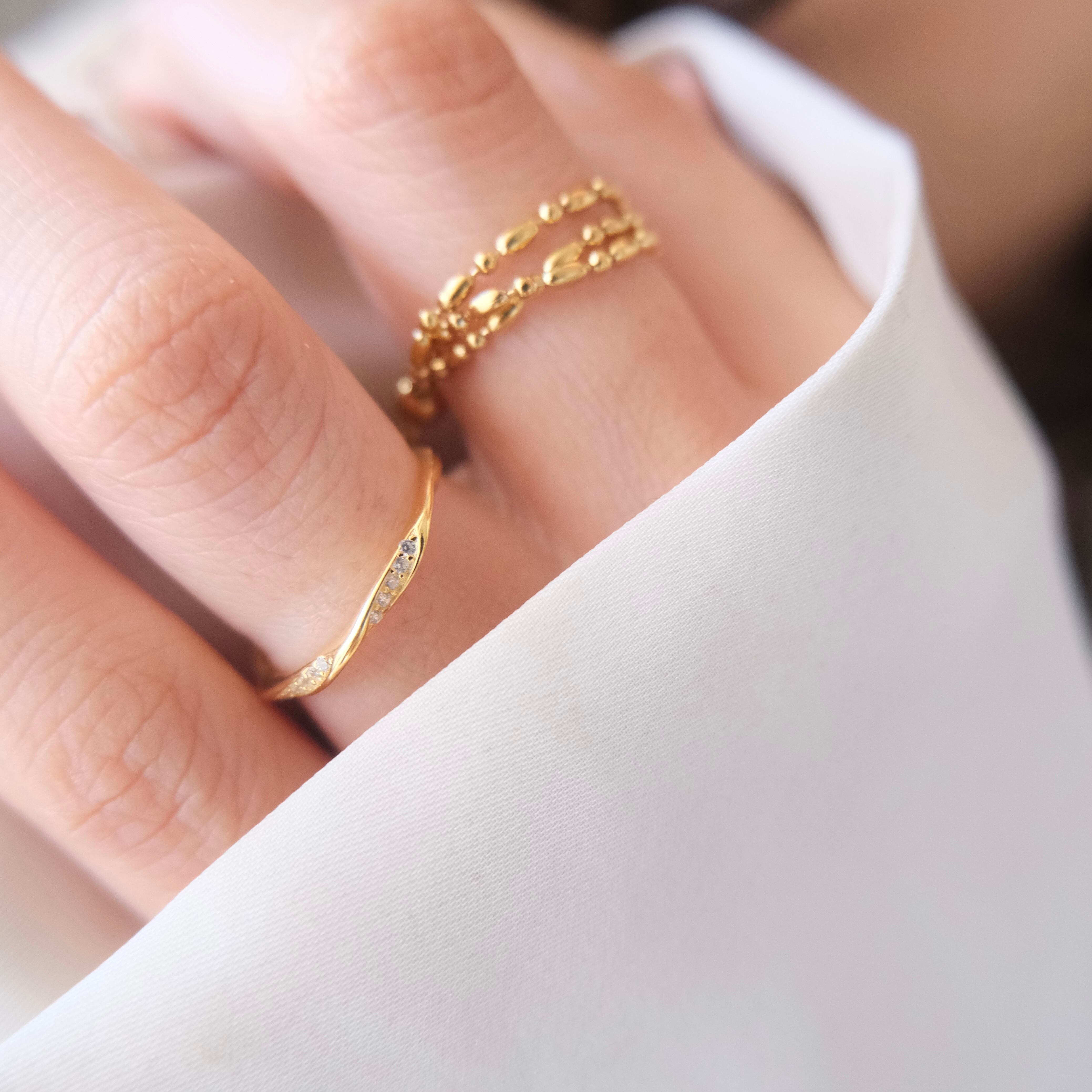 華奢さもありつつ存在感も抜群、一気にトレンドな手元に。