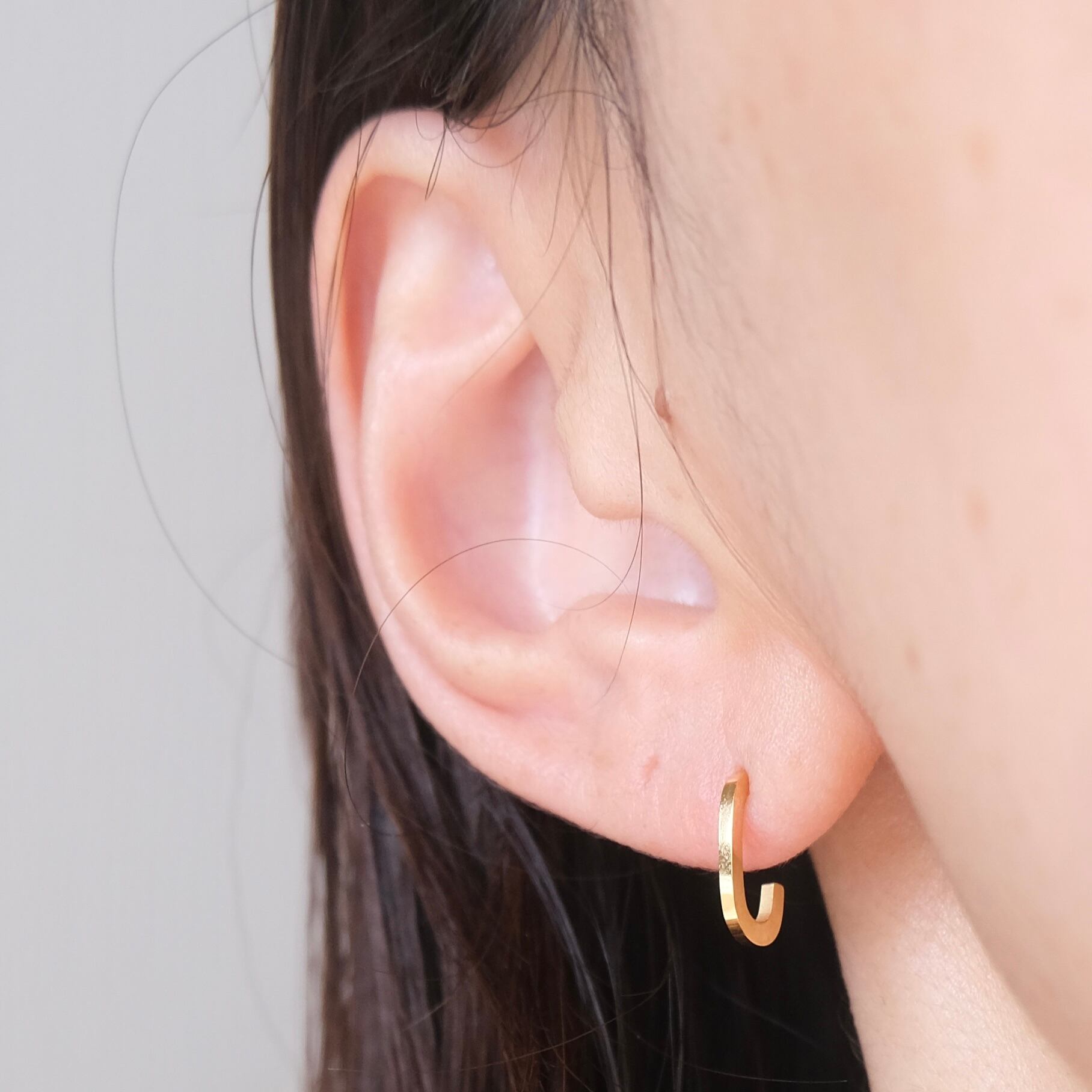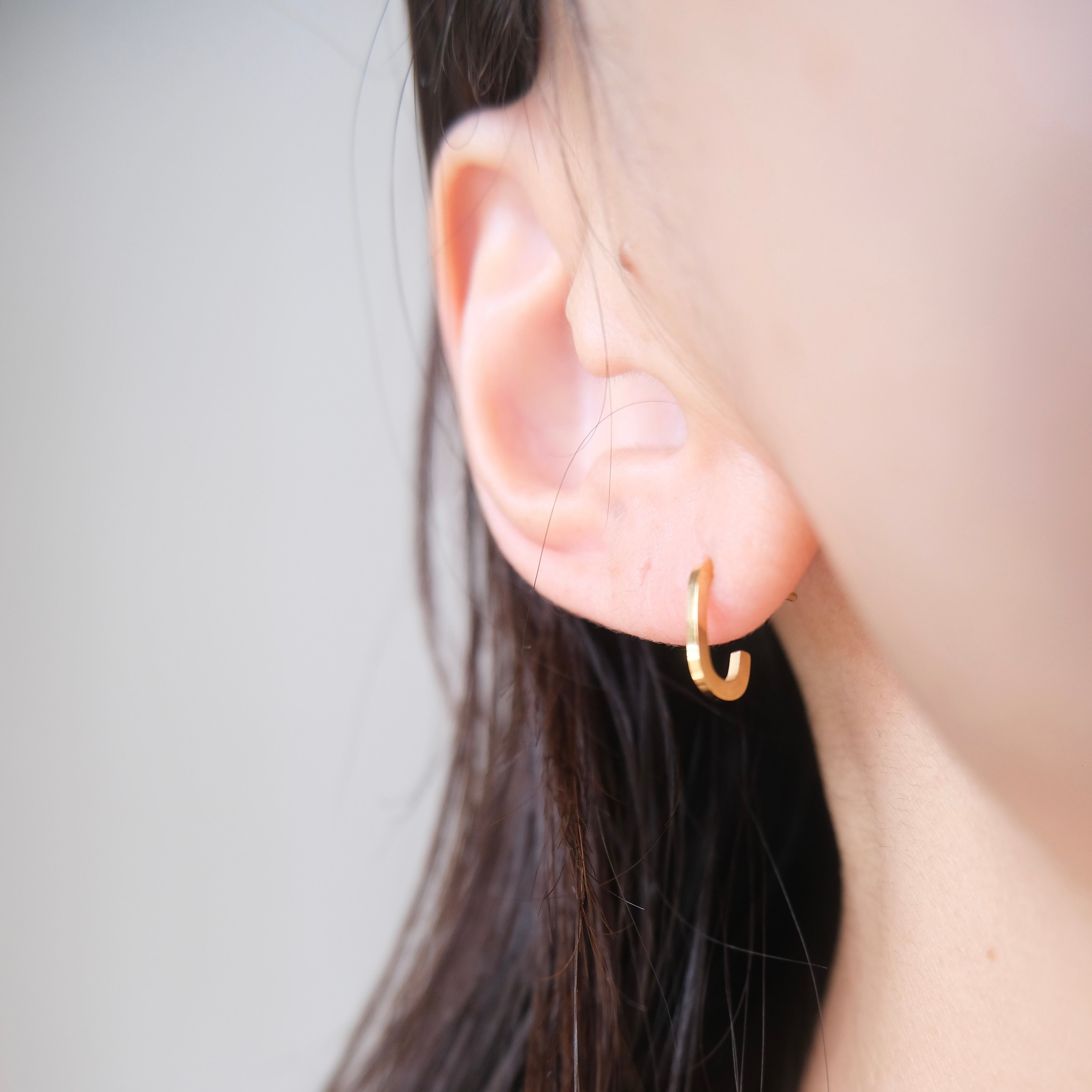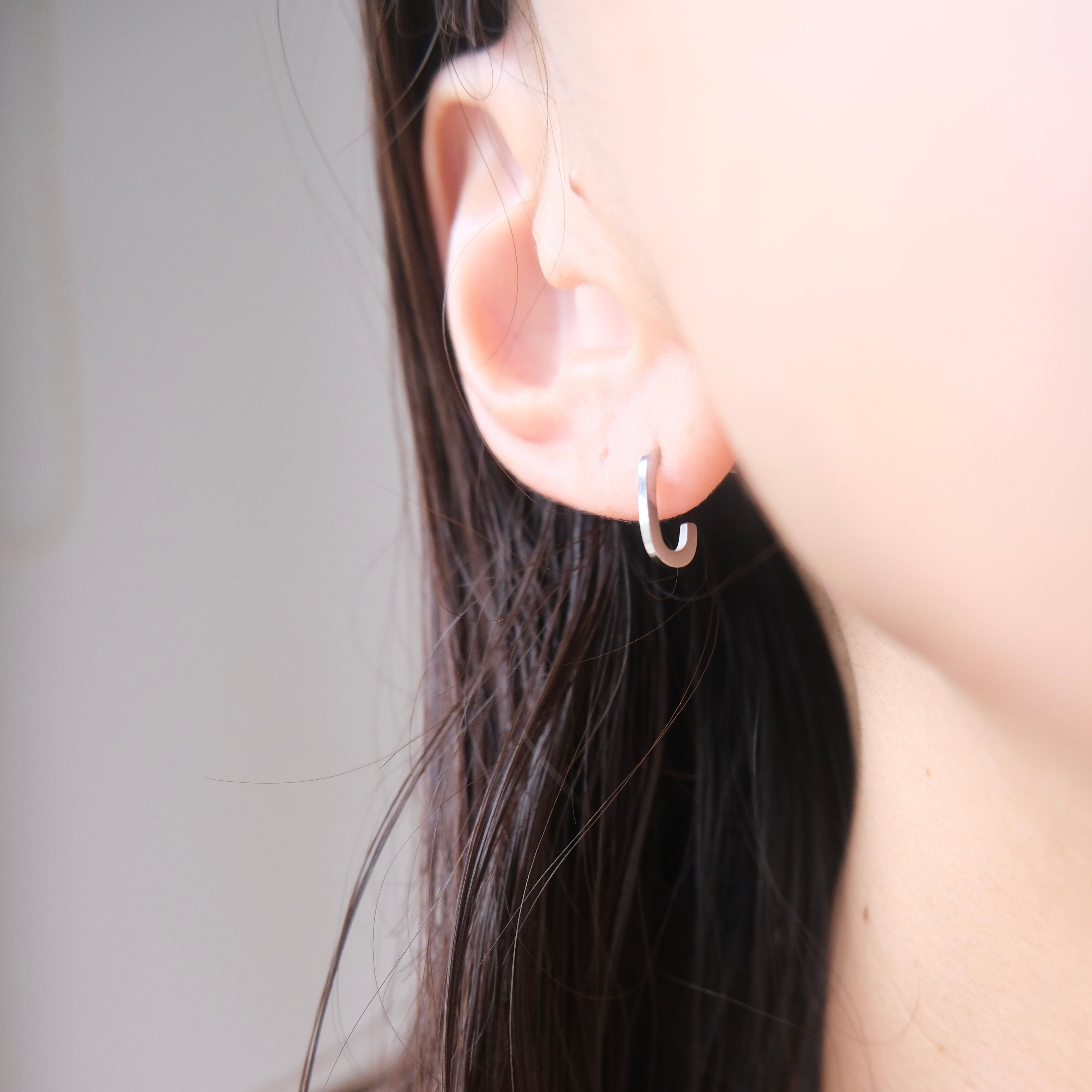 シンプルながらも洗練されたデザインのC字フープピアスは、どんなスタイルにも馴染む万能アイテムです。