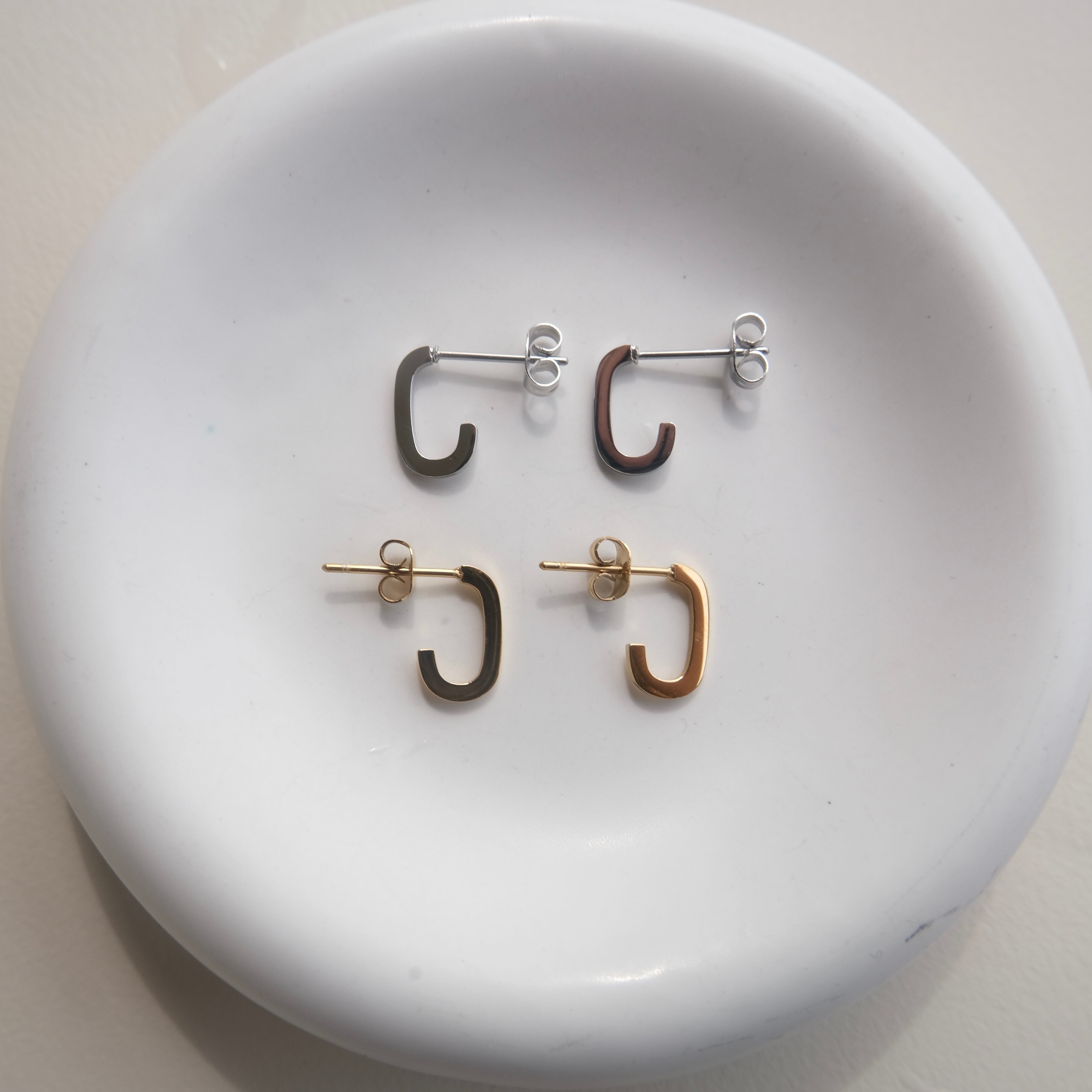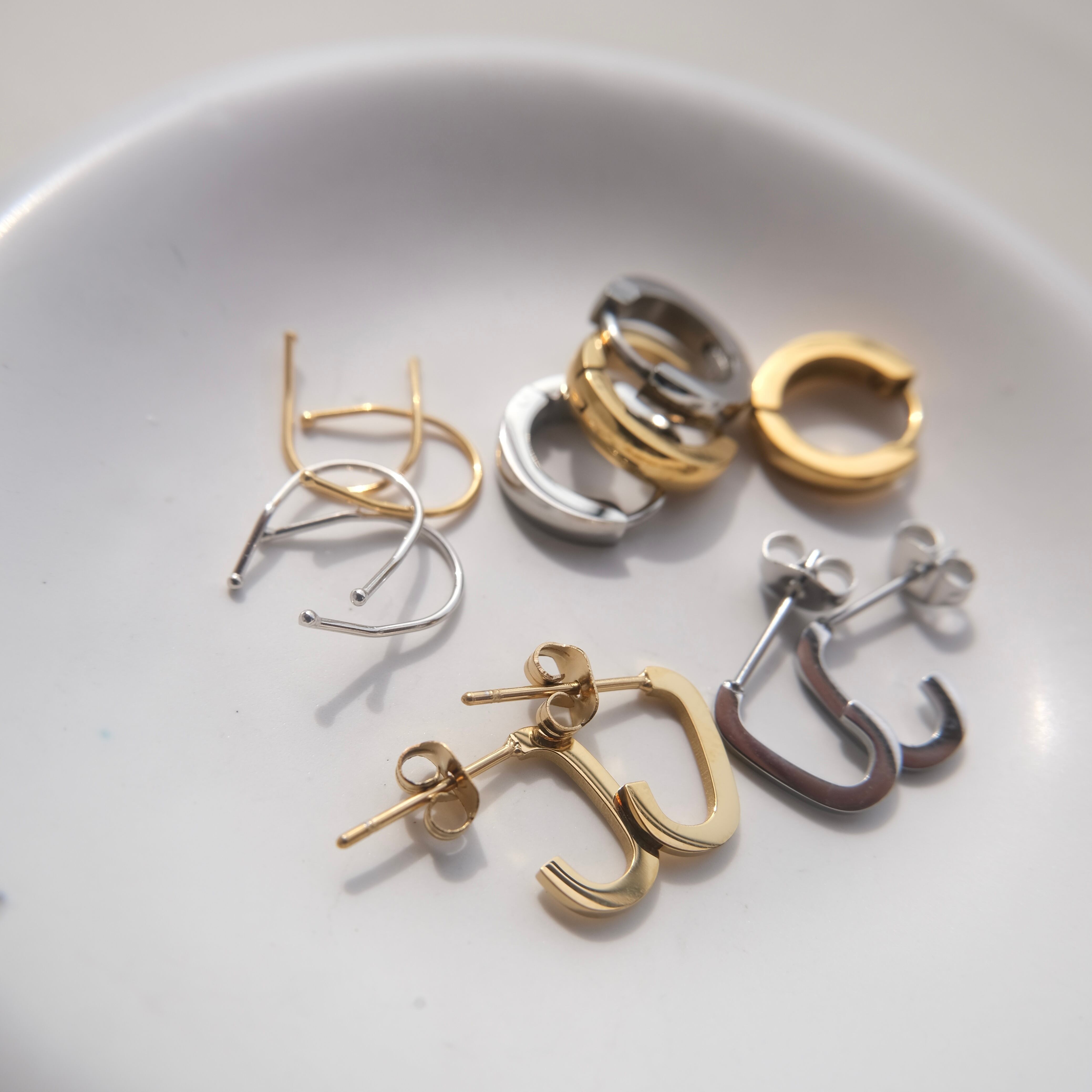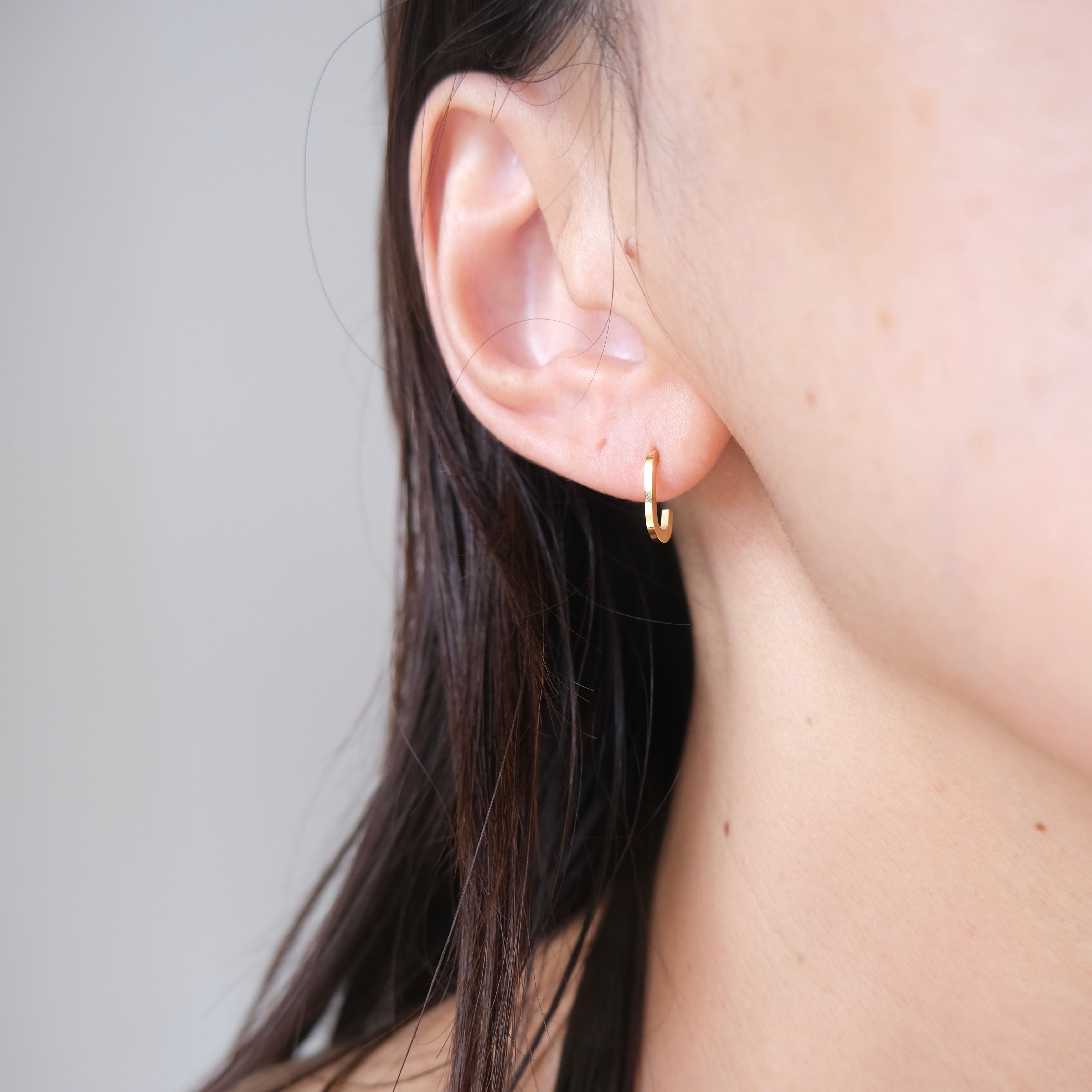 シンプルながらも洗練されたデザインのC字フープピアスは、どんなスタイルにも馴染む万能アイテムです。