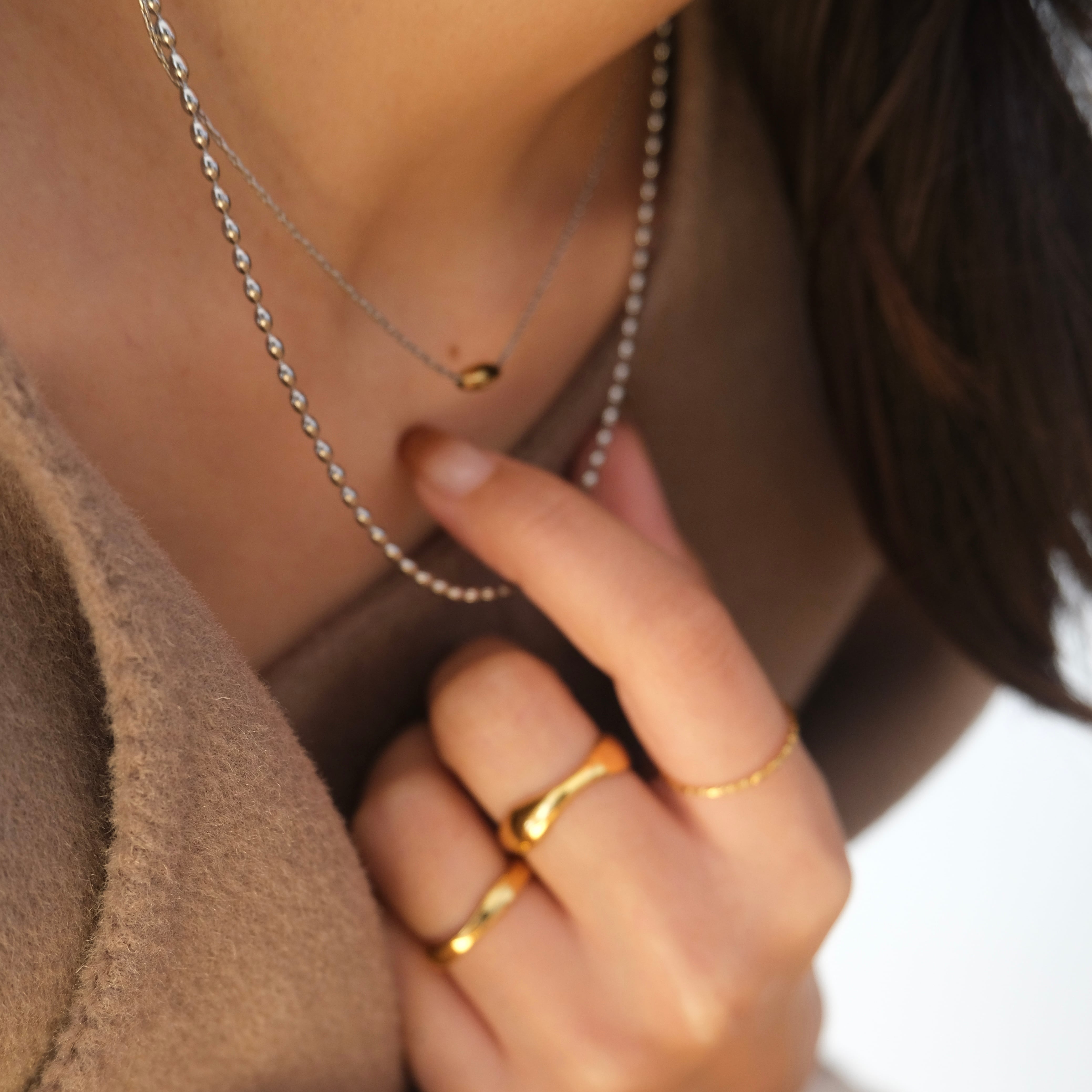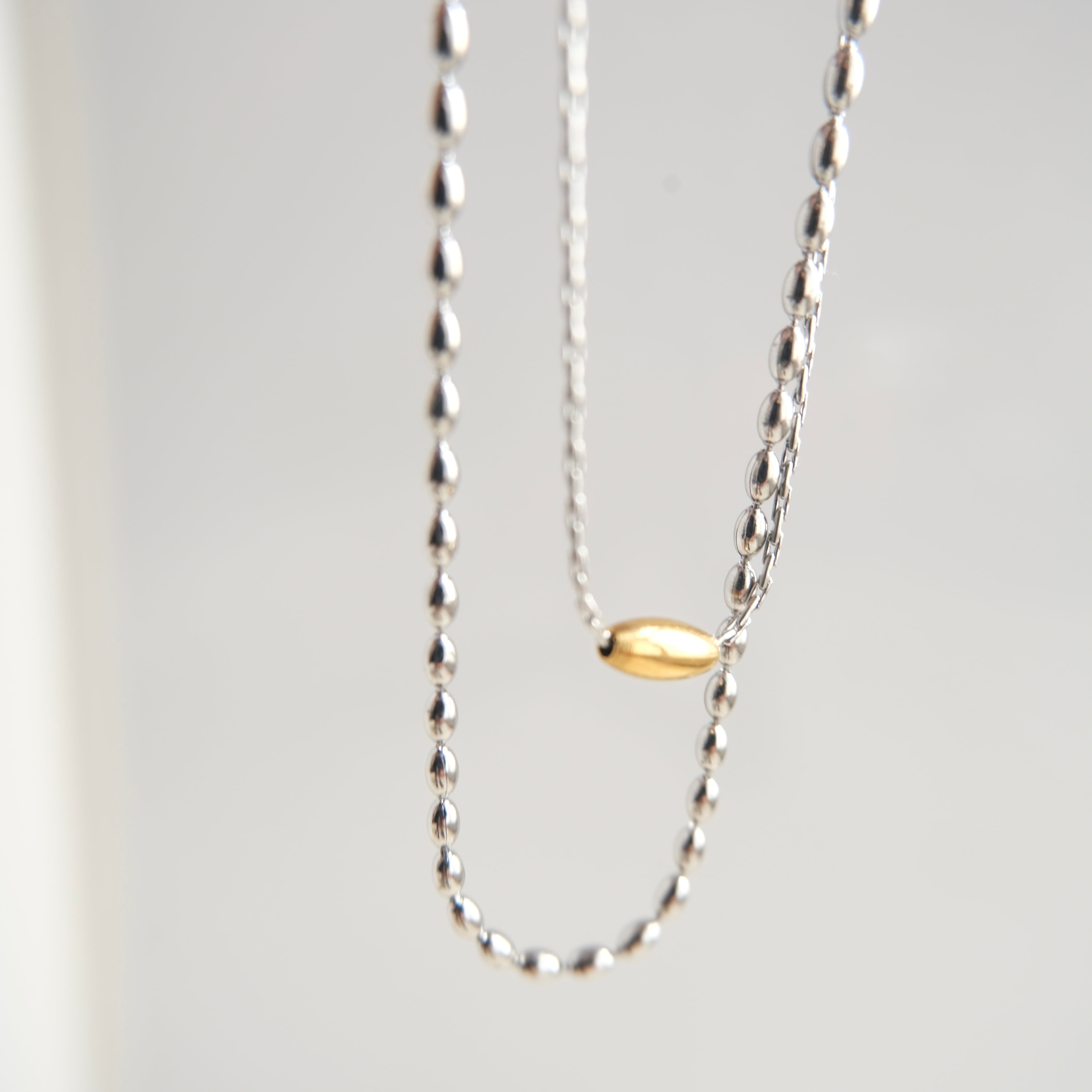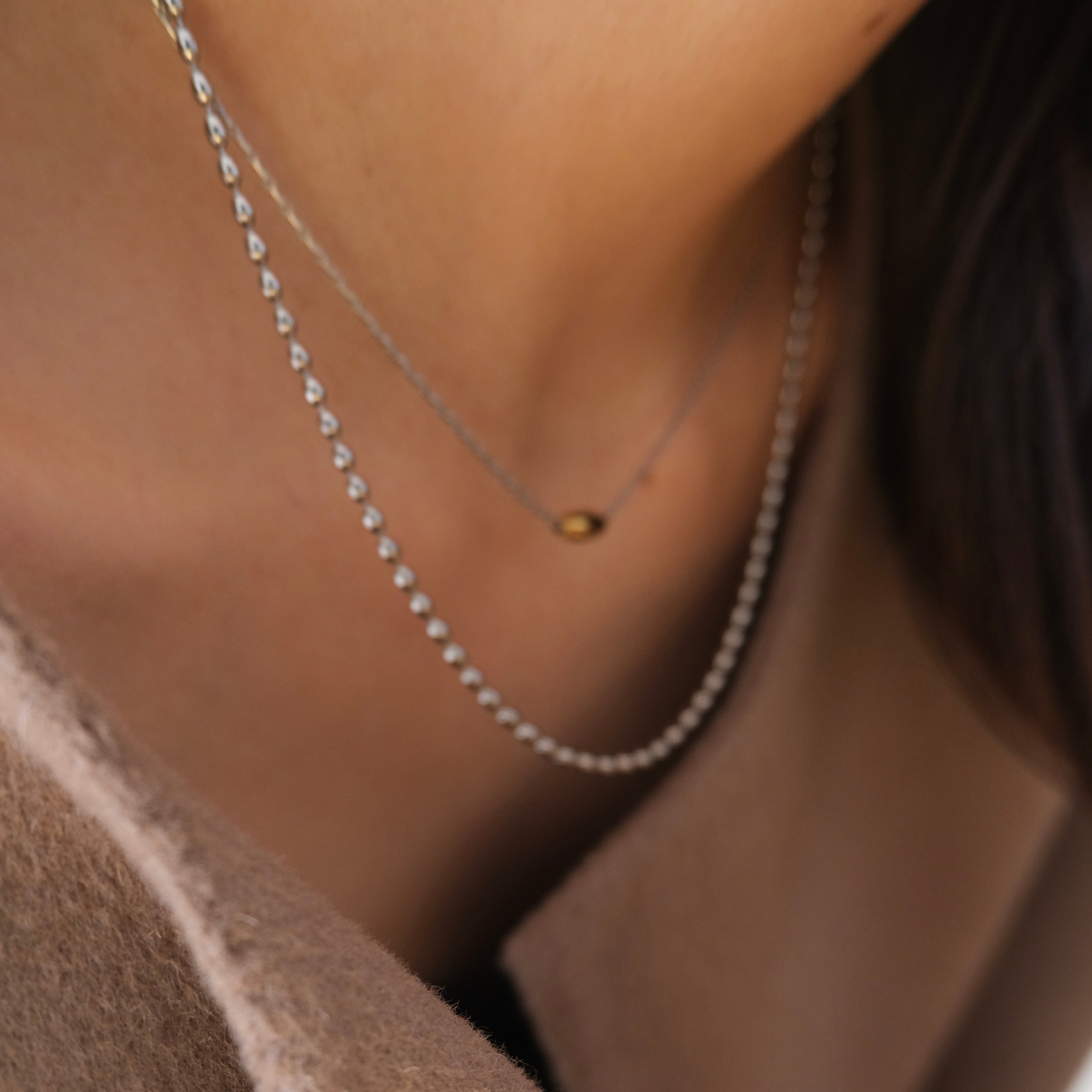 重ね付けが瞬時に決まる、華奢チェーン×ボールチェーンのダブルネックレス✳︎