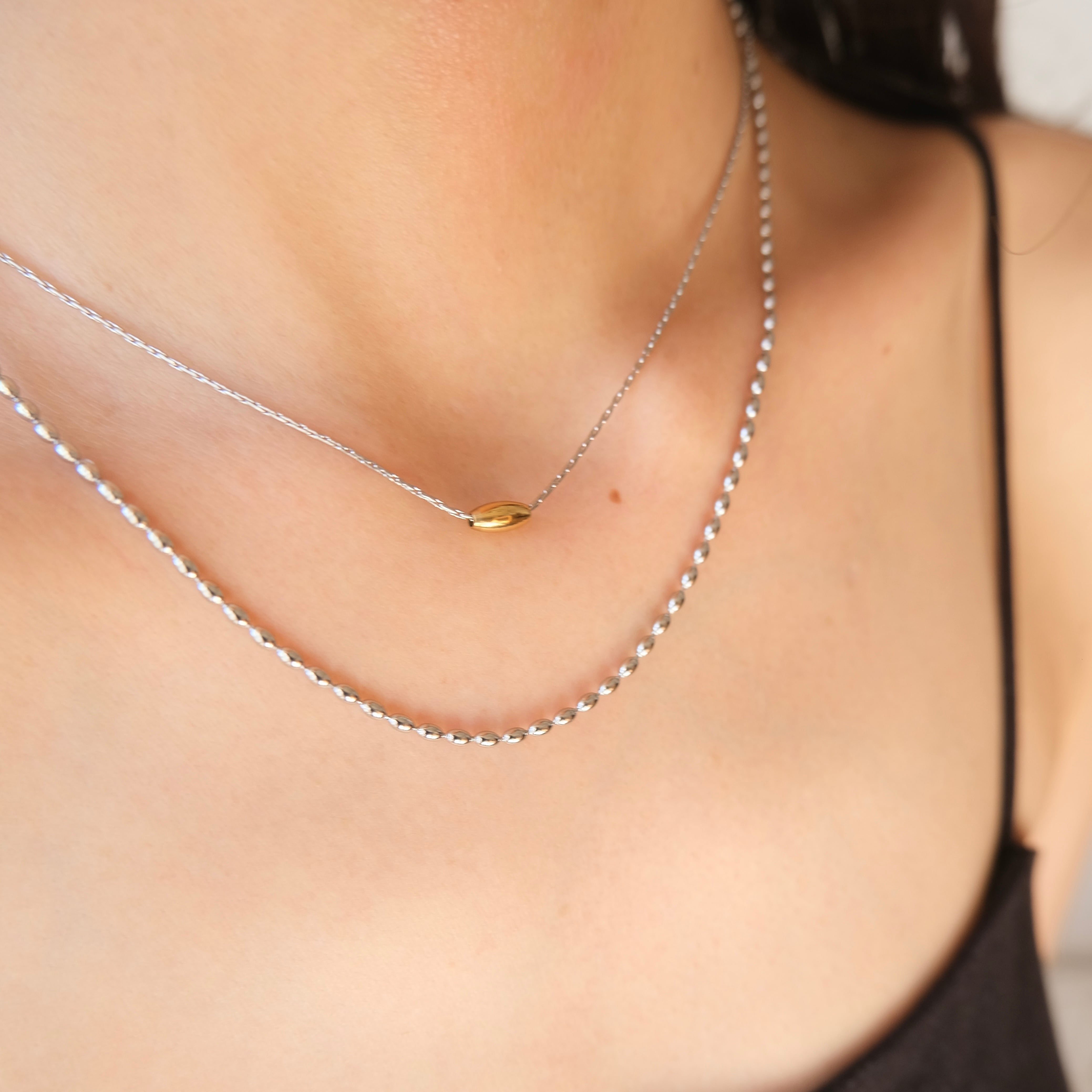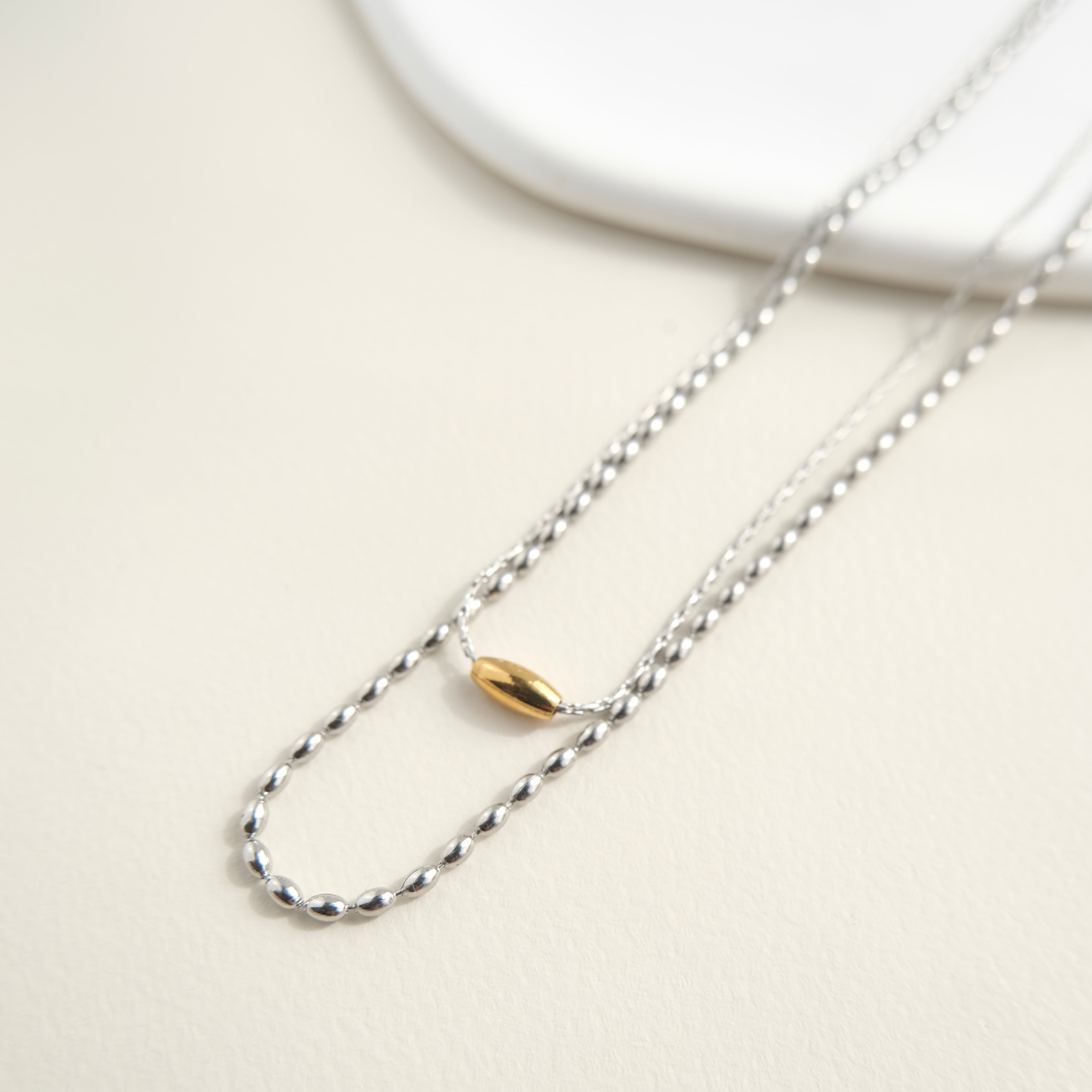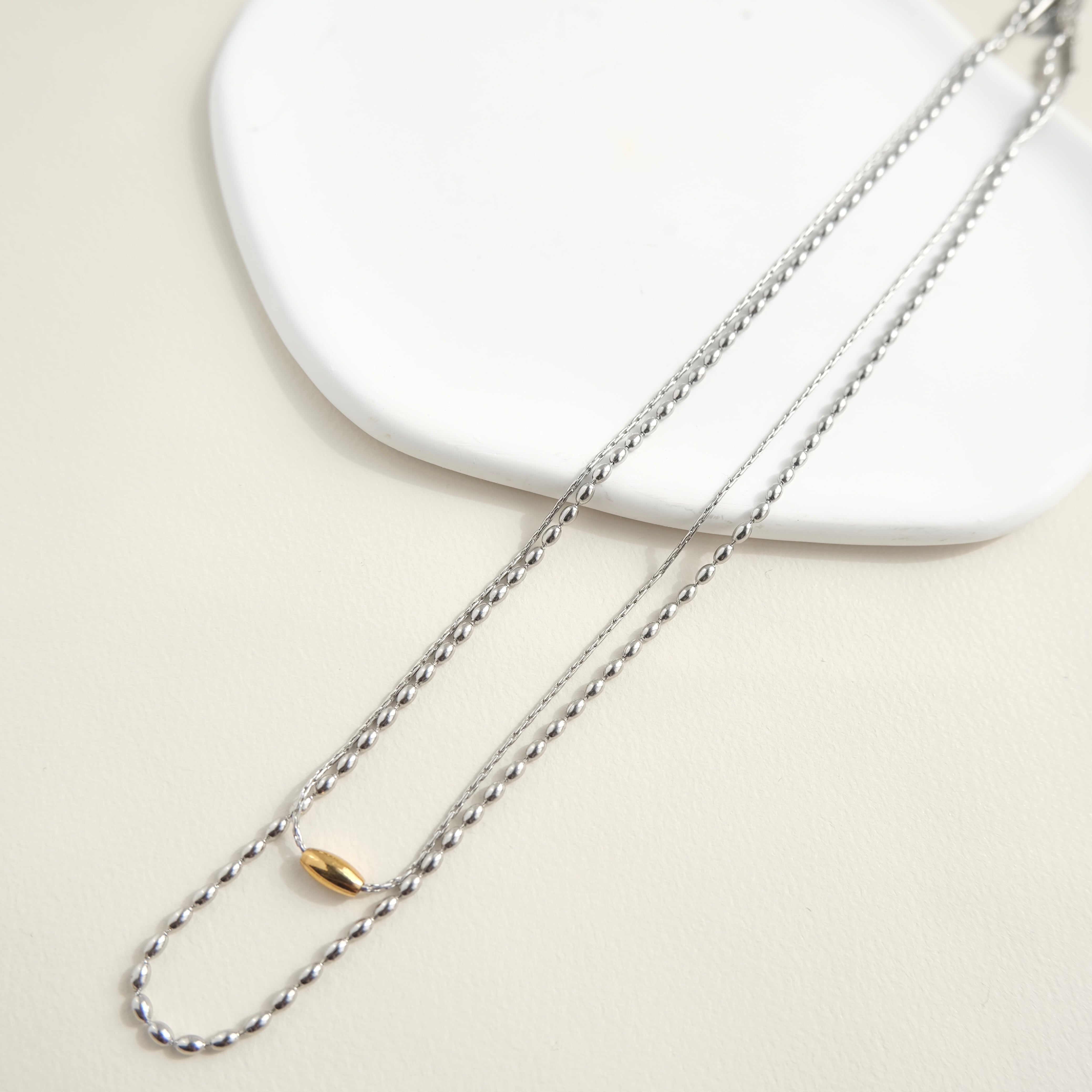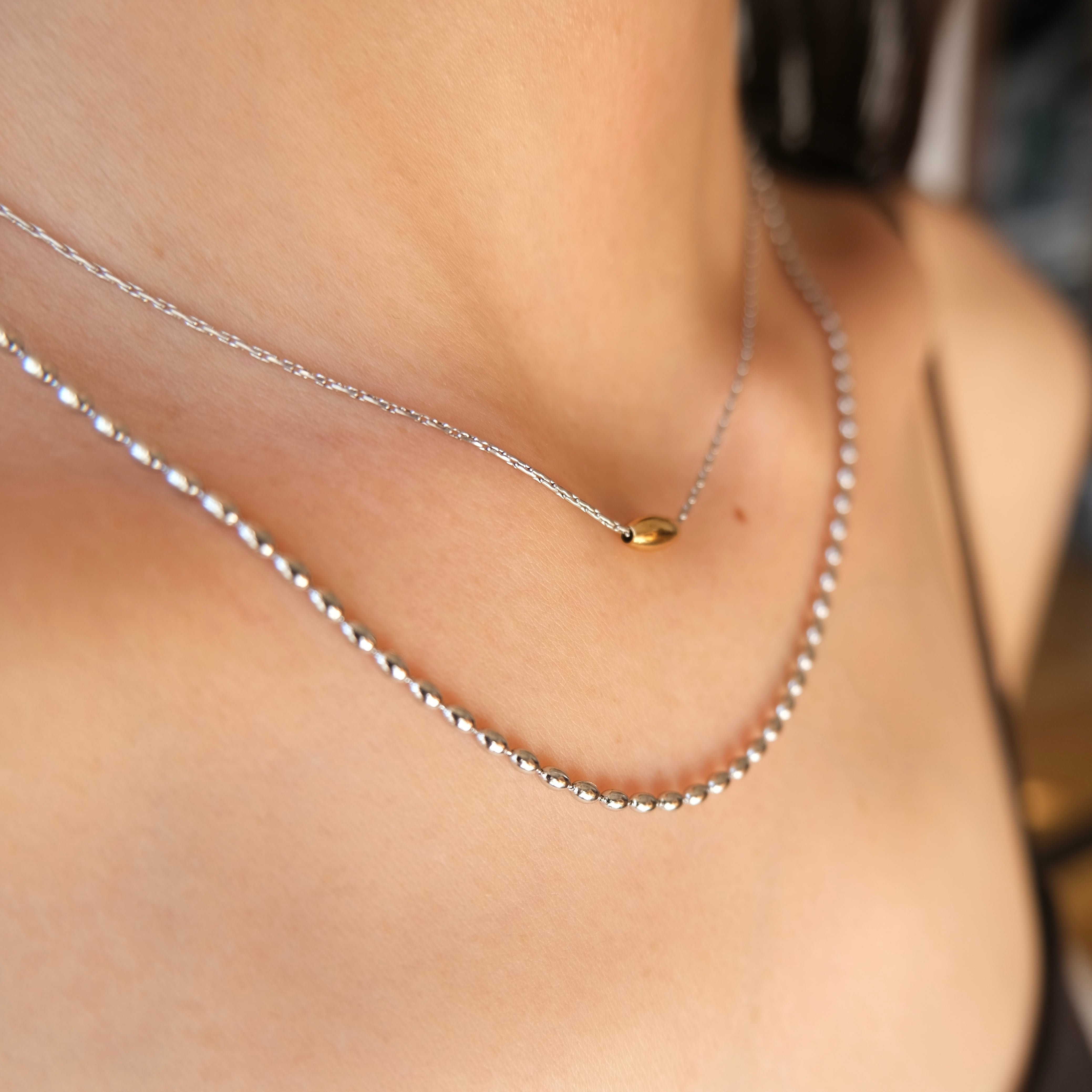 重ね付けが瞬時に決まる、華奢チェーン×ボールチェーンのダブルネックレス✳︎
