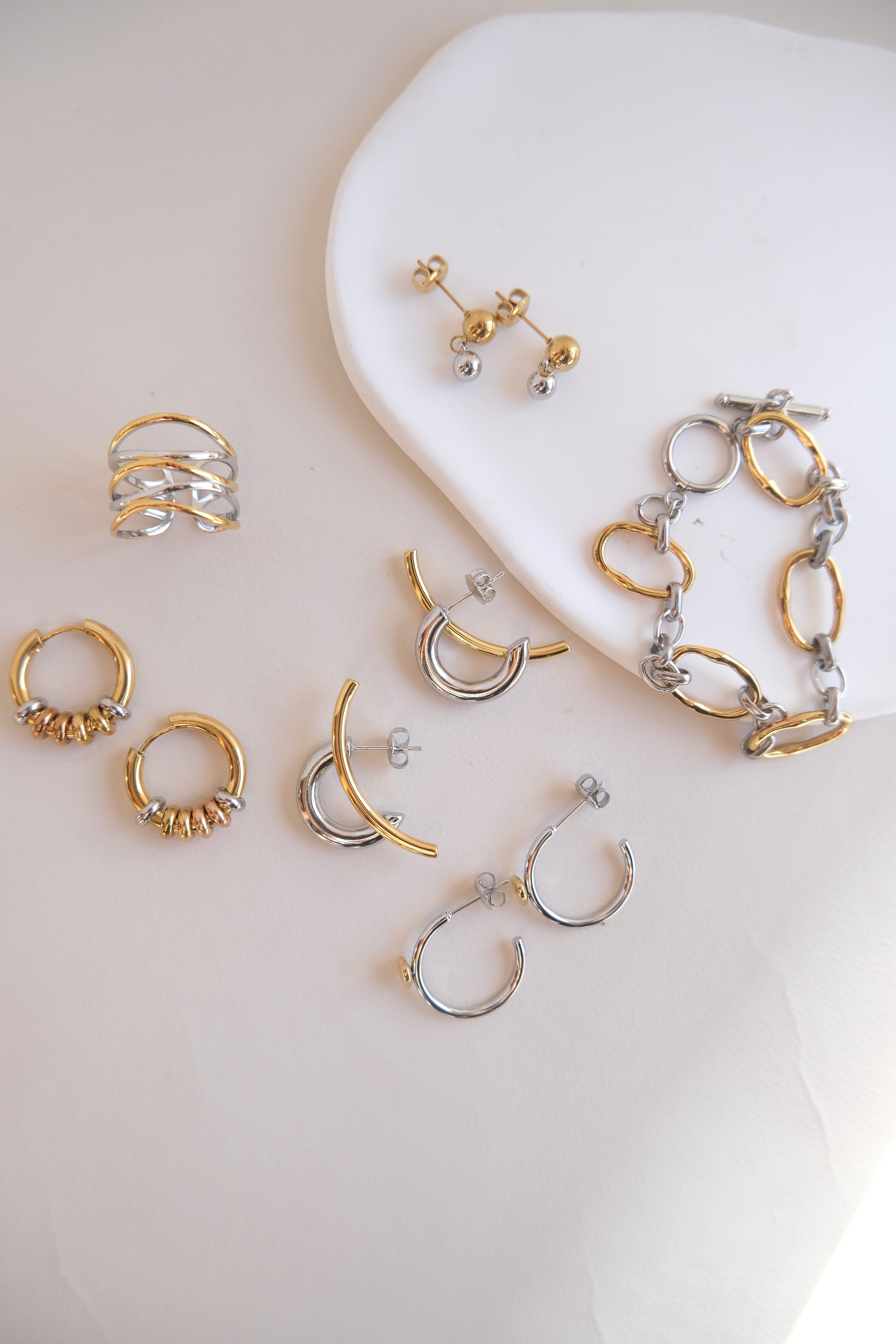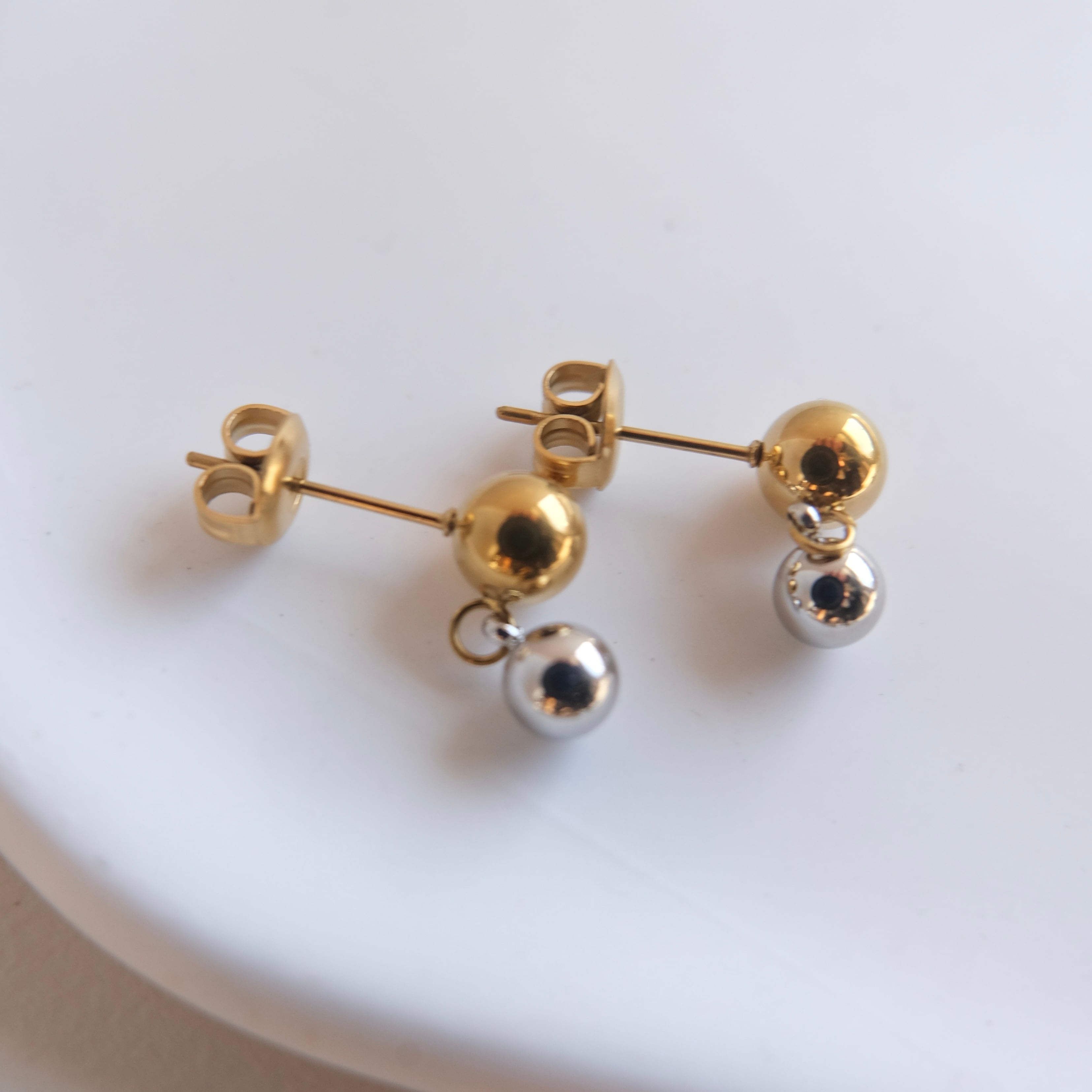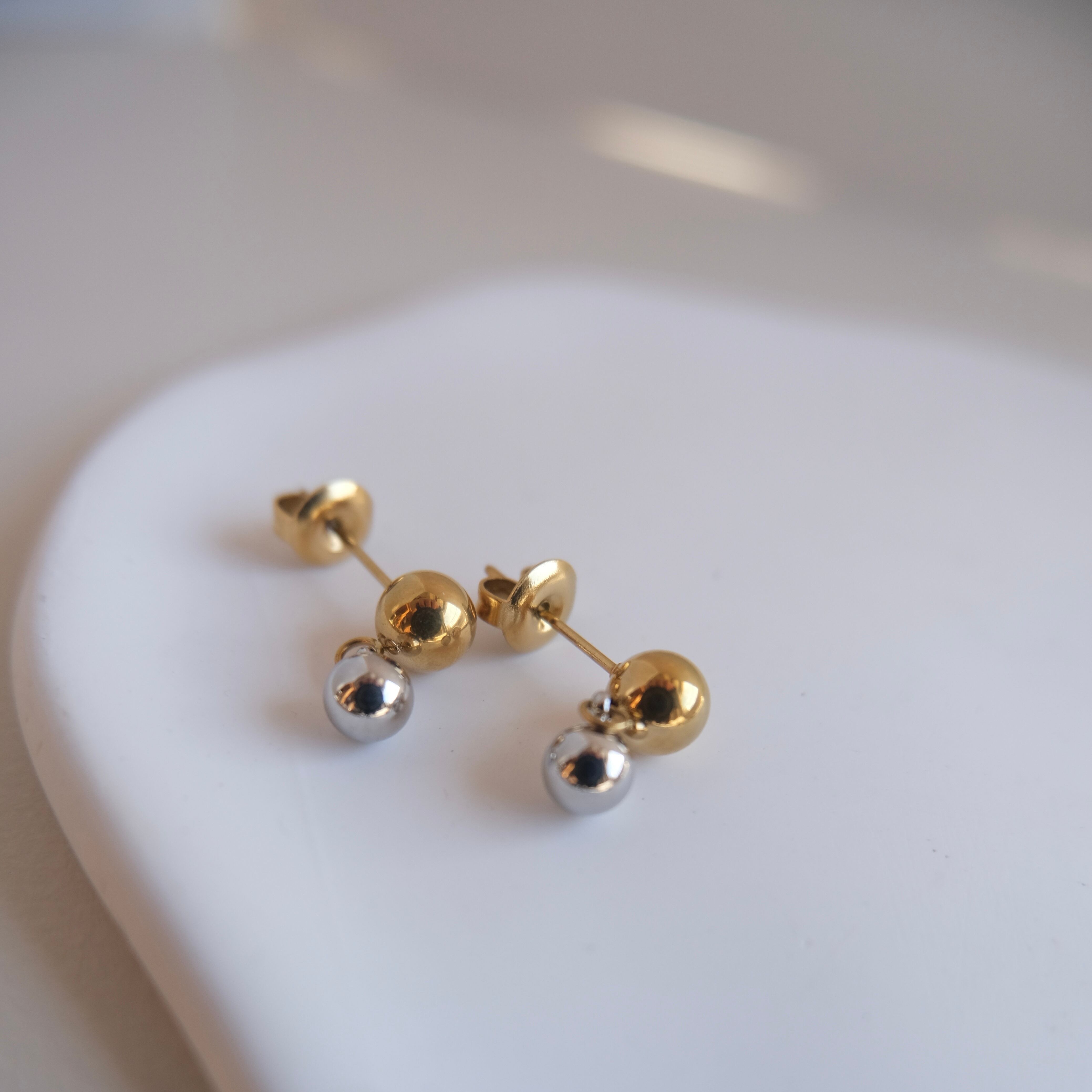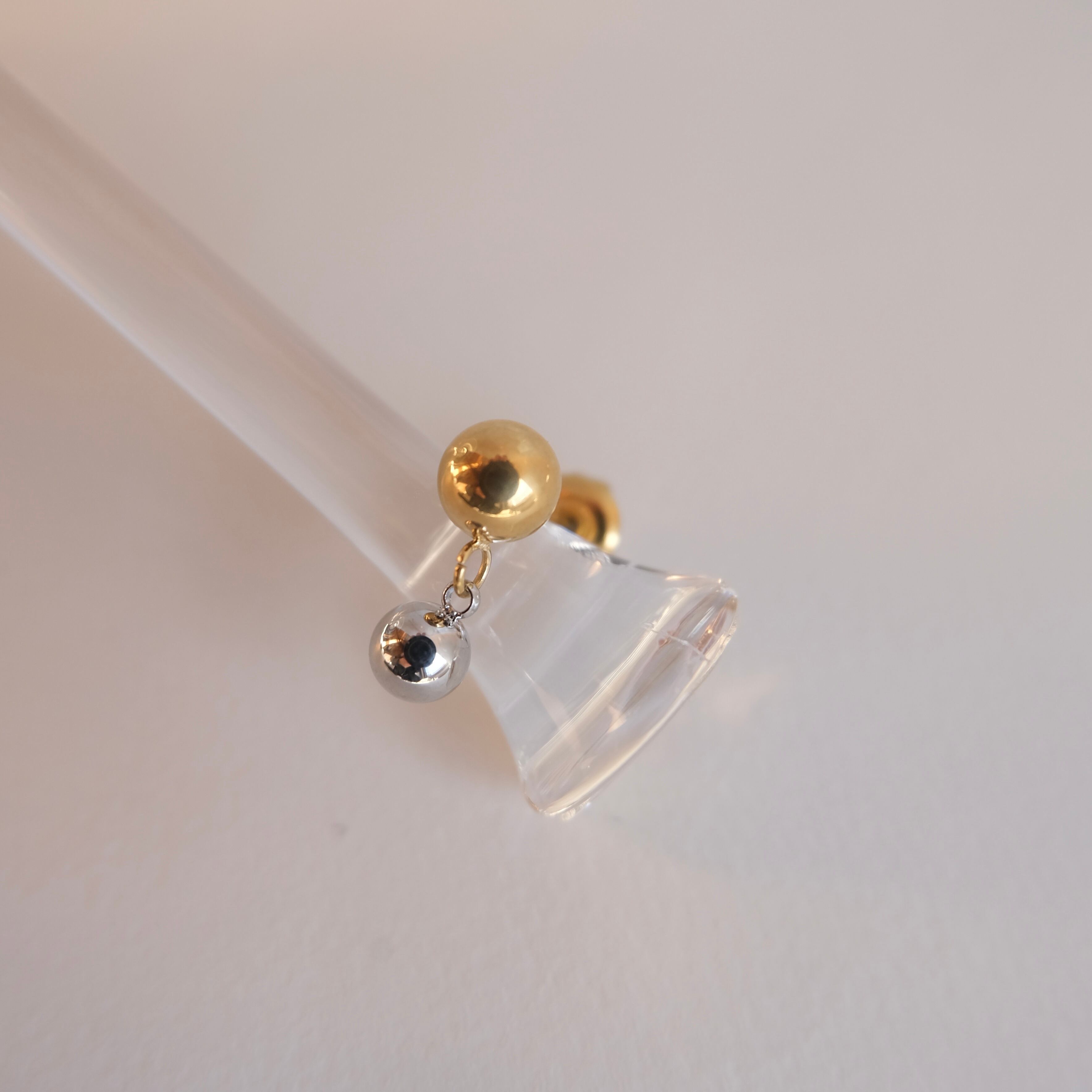 ゴールドとシルバーのボールが連なる、トレンドのミックスカラーピアス✳︎
