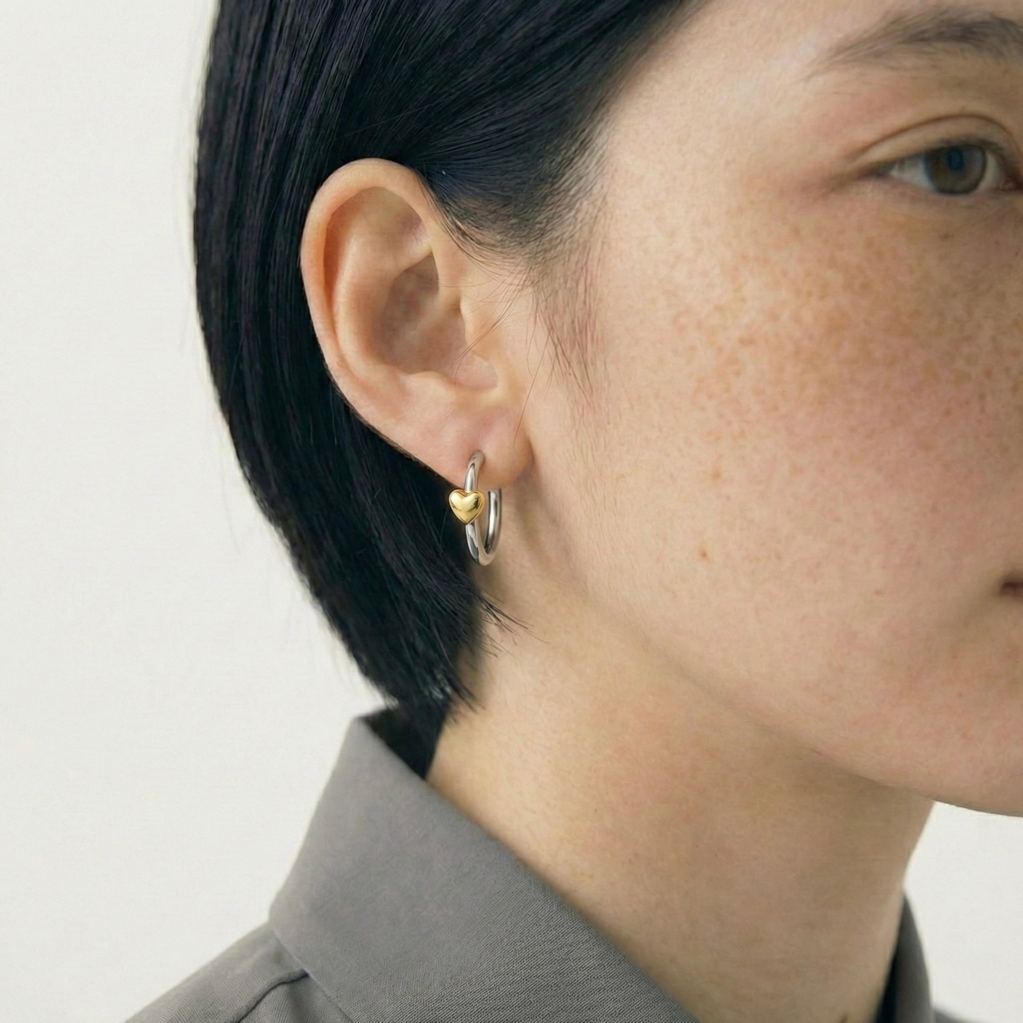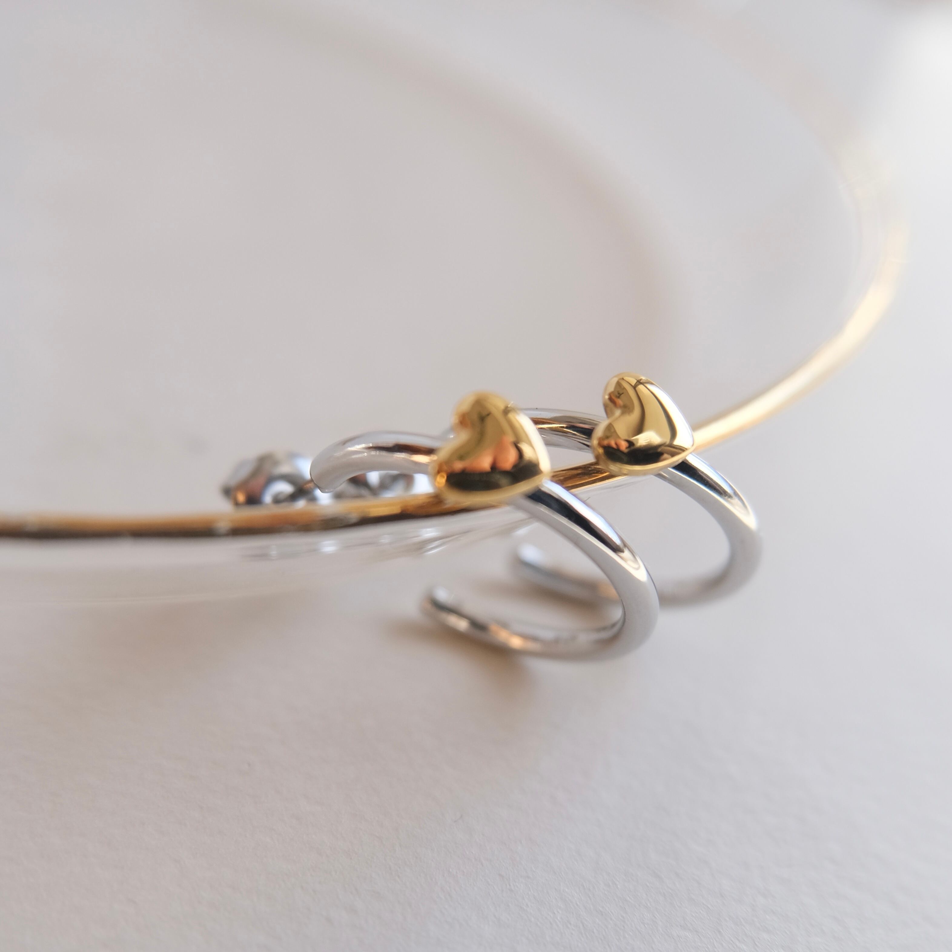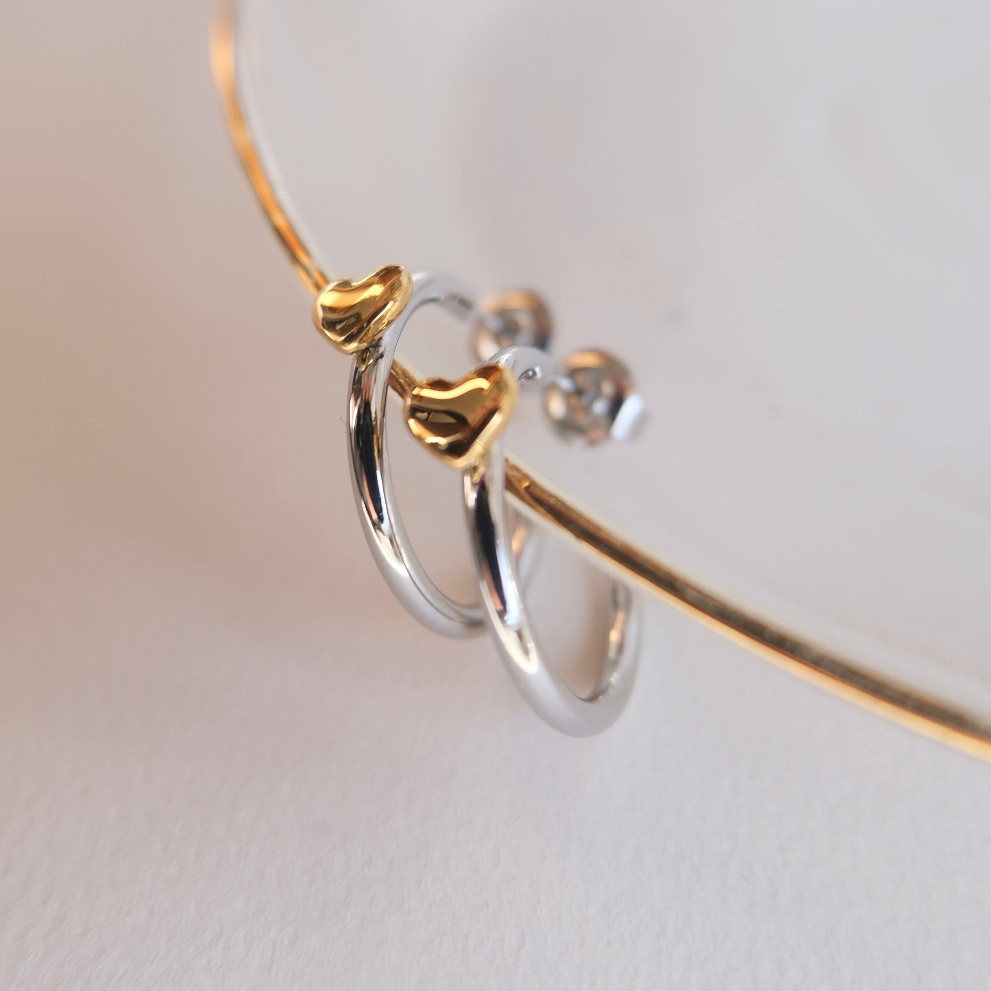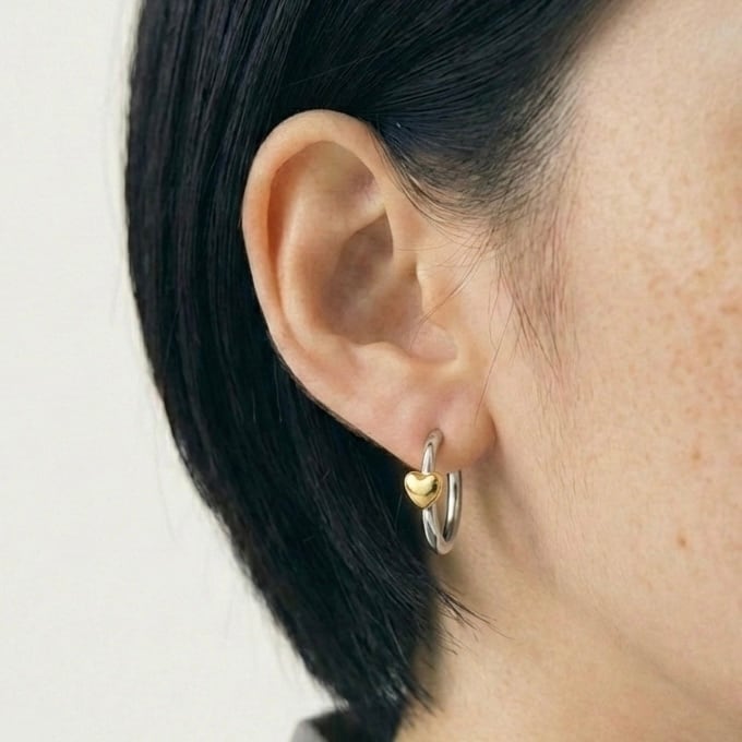 シルバーの細身フープに、ゴールドの小ぶりなハートを添えたミックスカラーピアス✳︎