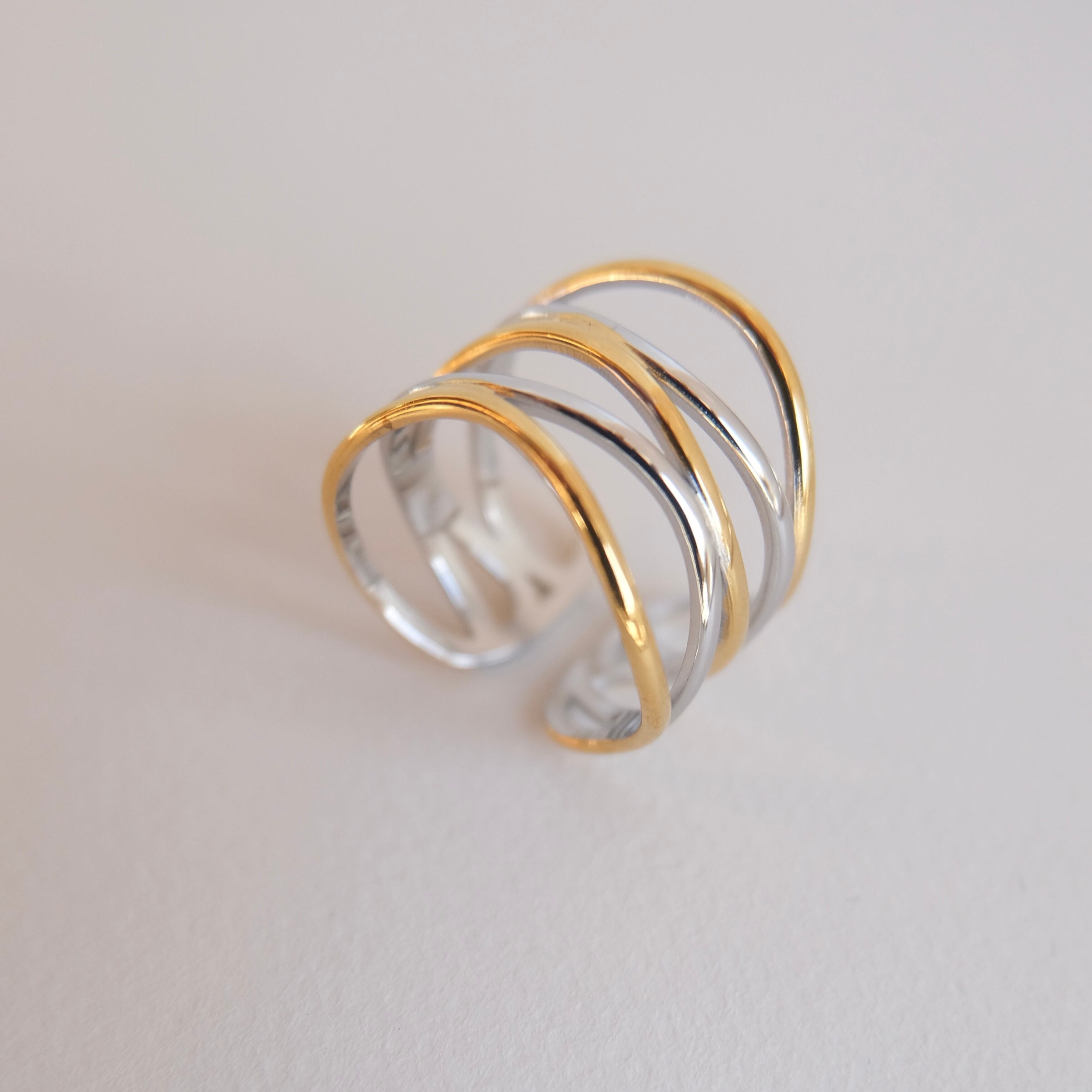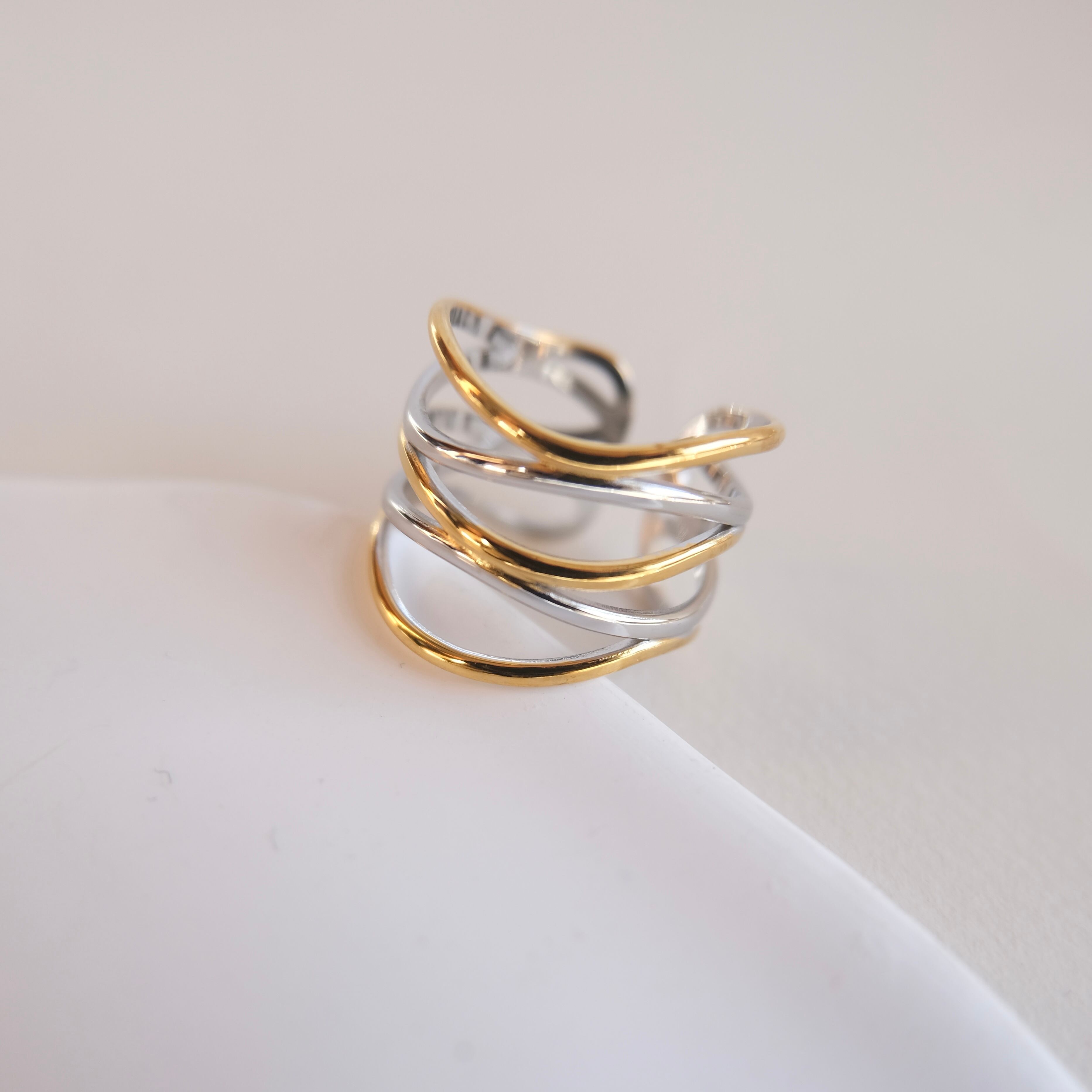 シルバー×ゴールドの曲線が重なり合う、洗練されたミックスカラーリング。