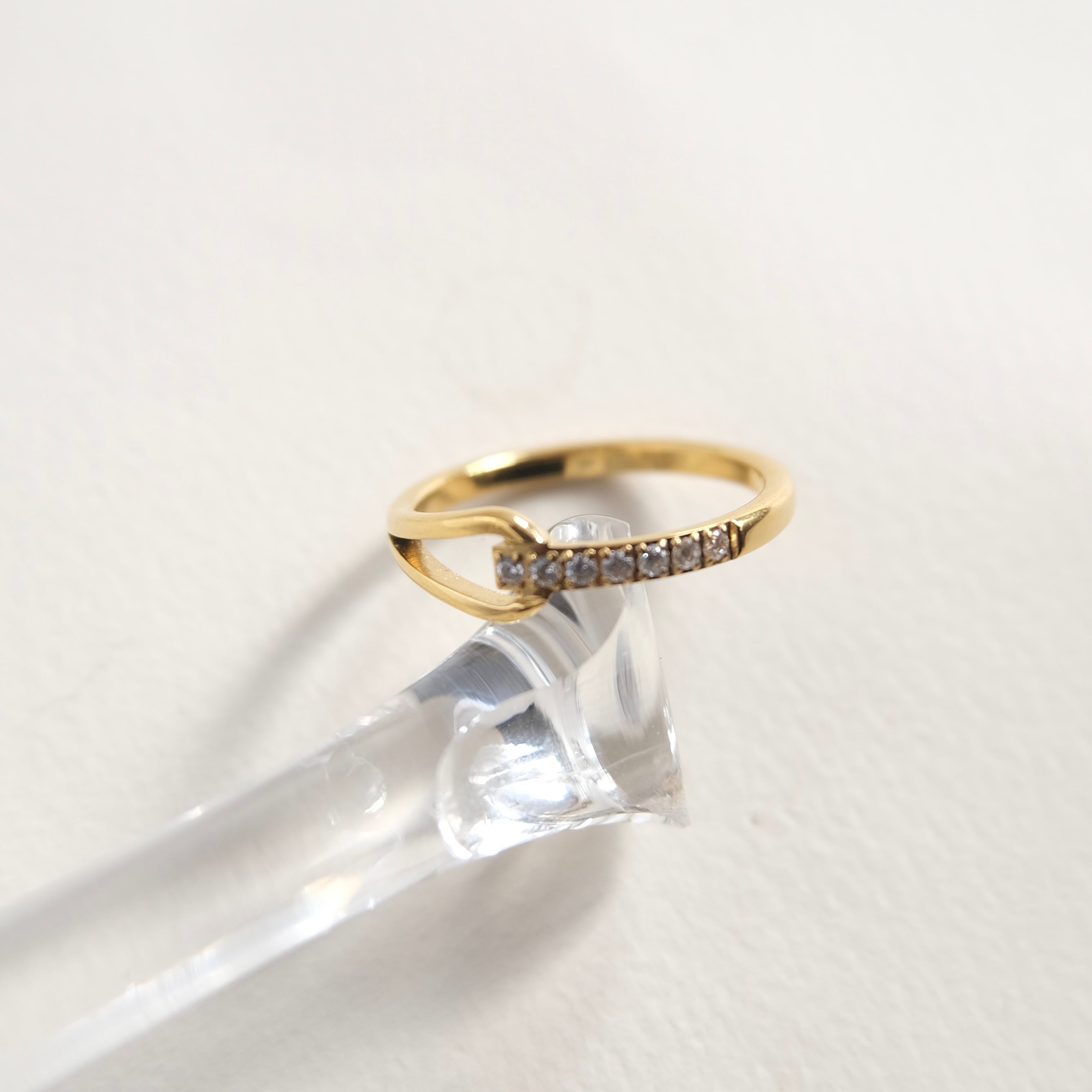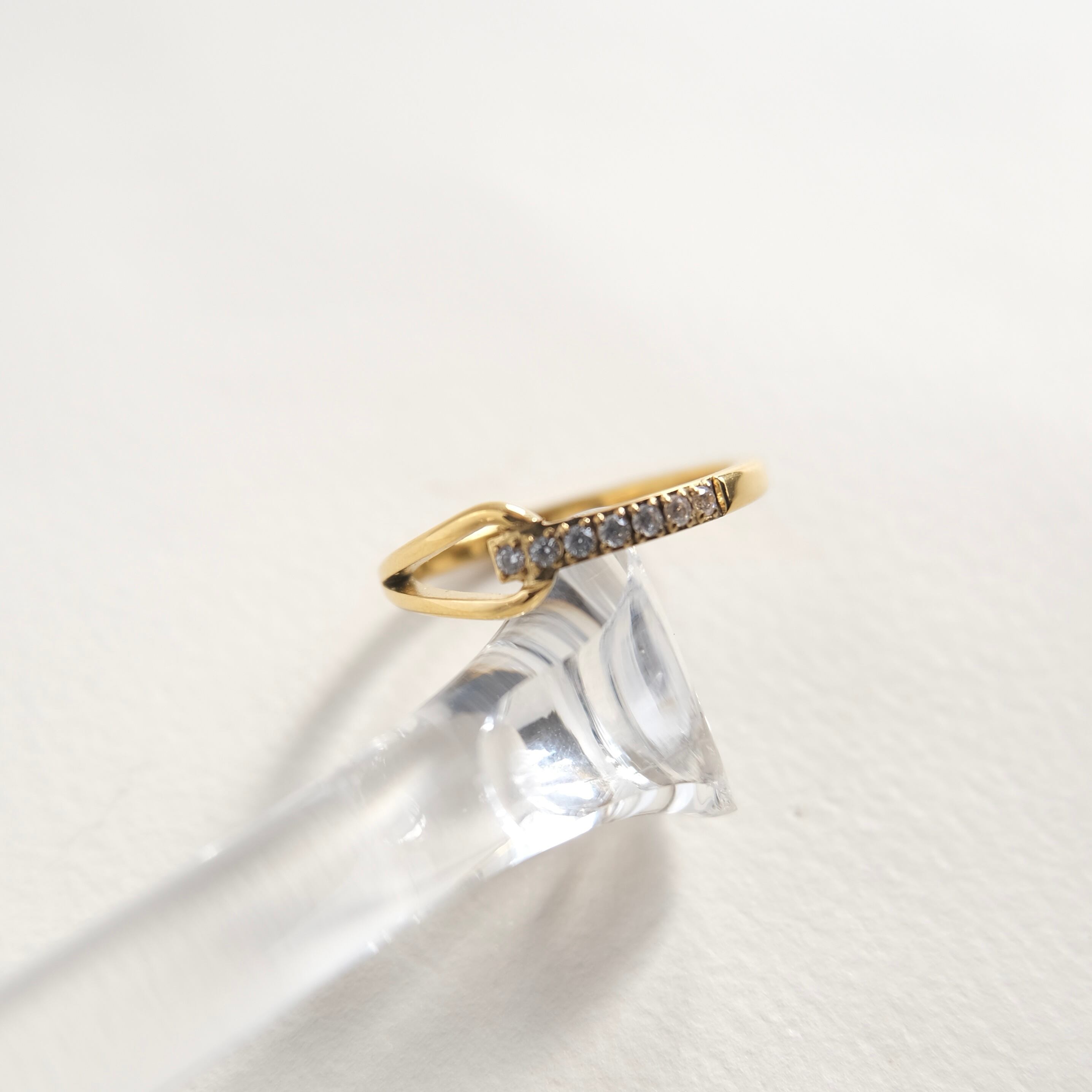 繊細なゴールドのラインに並んだ小粒のストーンが、光を受けるたびに上品な輝きを放ちます。