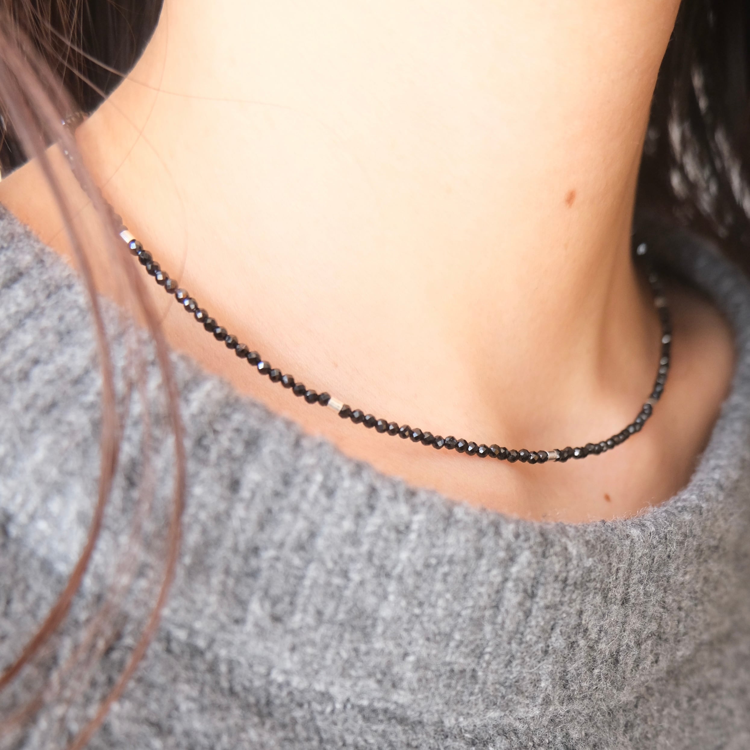 大人の首元をシャープに引き締めるブラックビーズネックレス✳︎