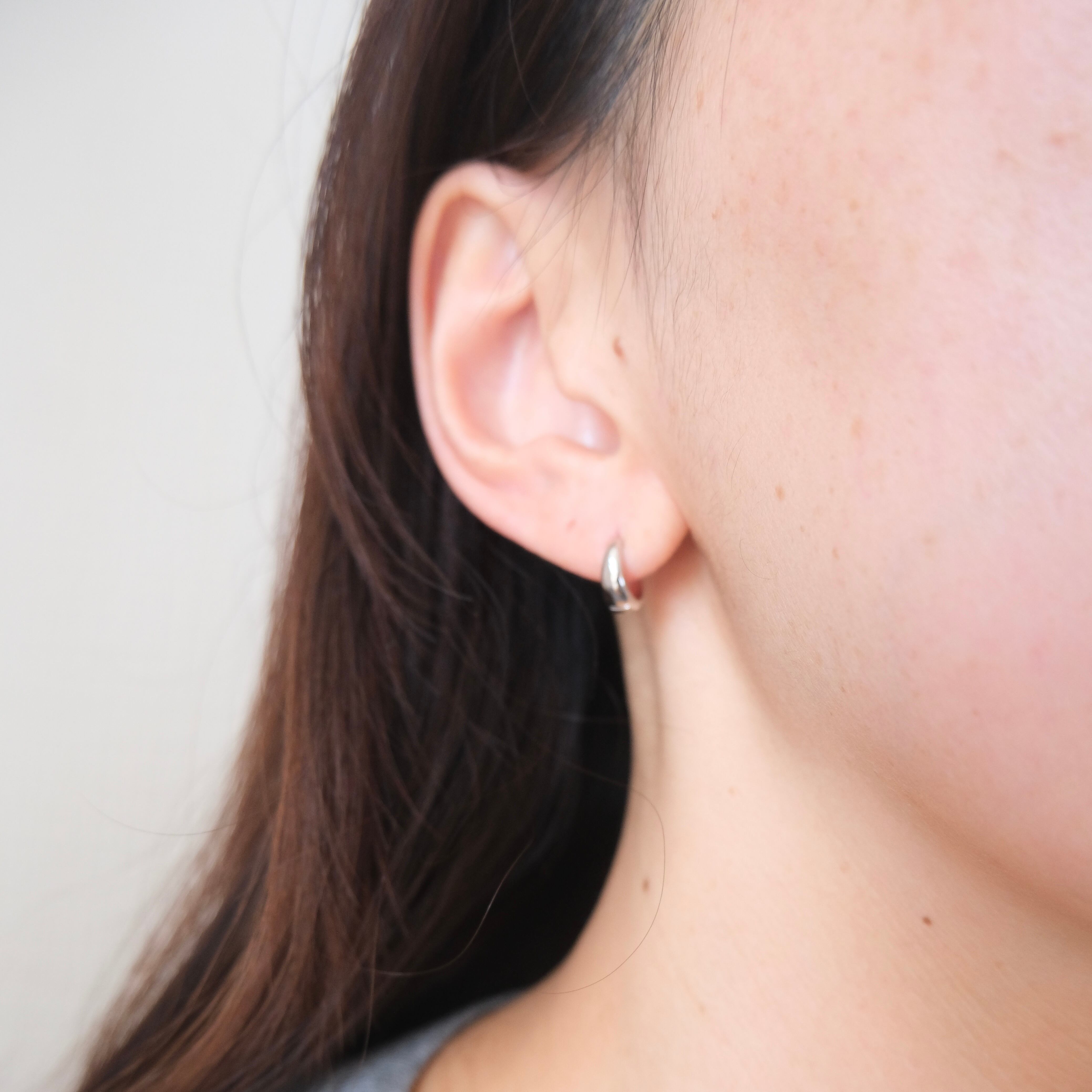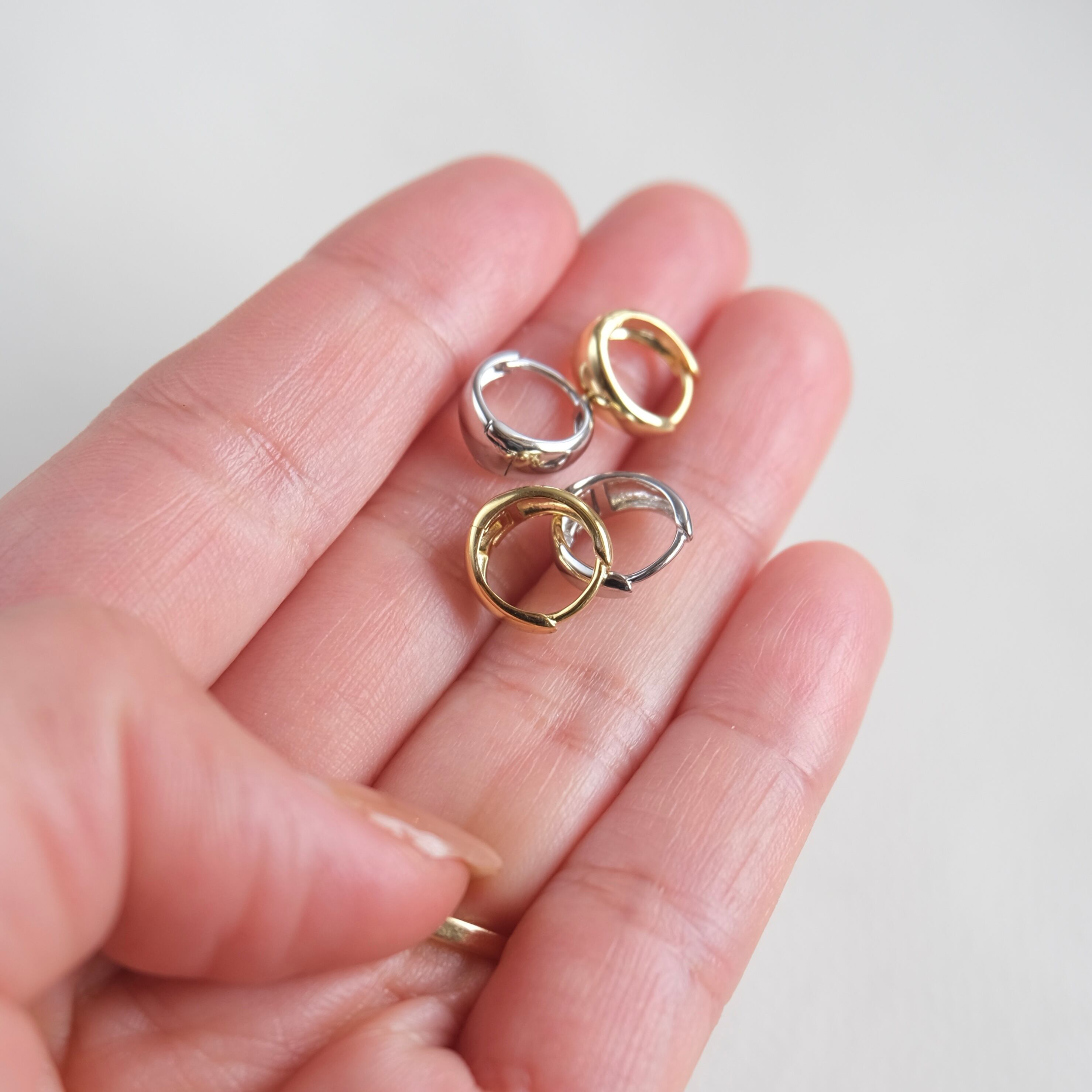 洗練された「ぷっくり」としたフォルムが、お顔周りに柔らかな光と華やぎを添えるフープピアス。