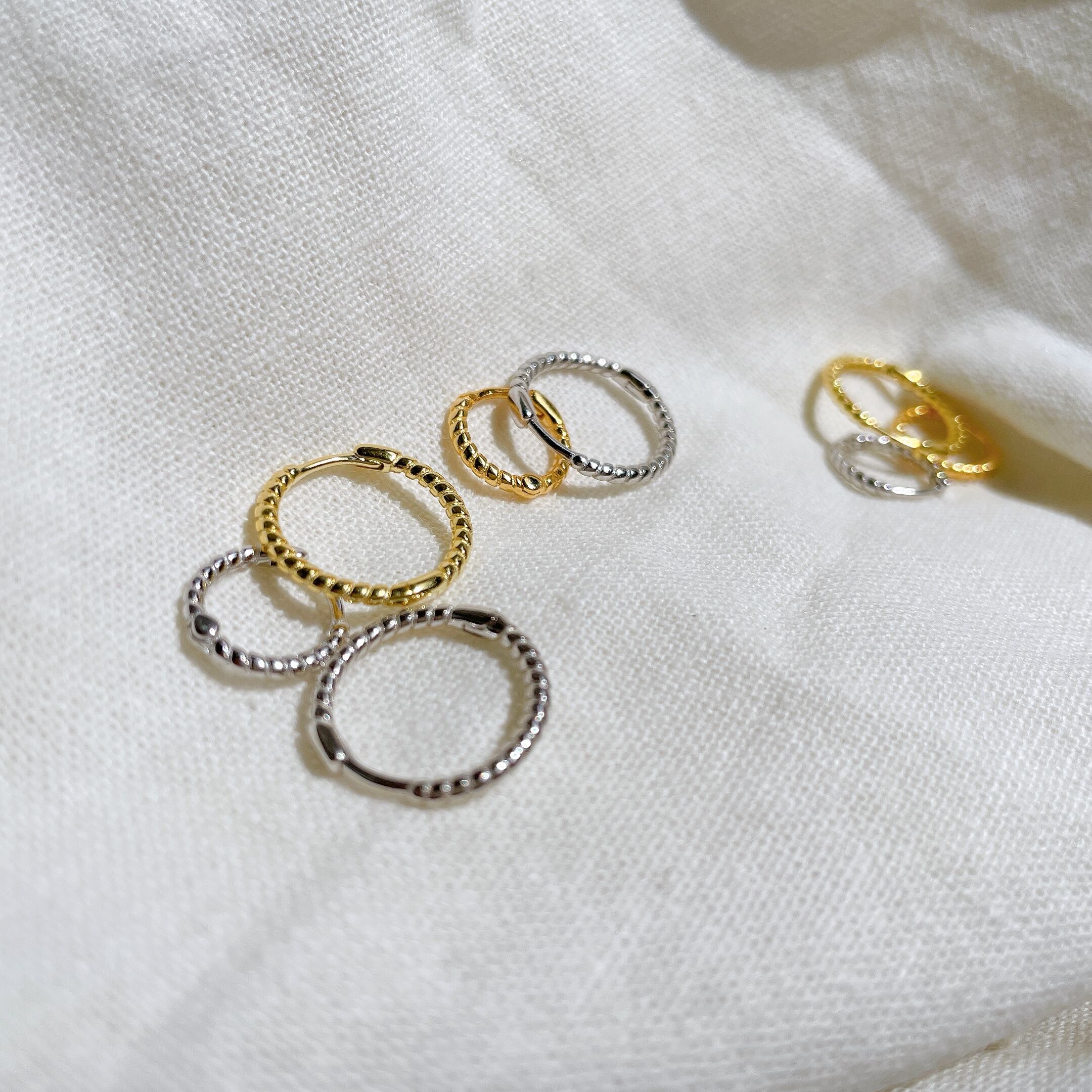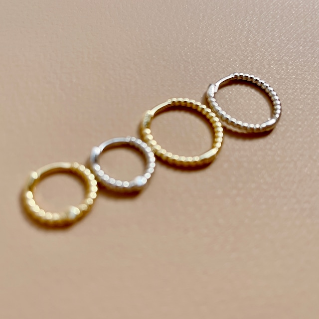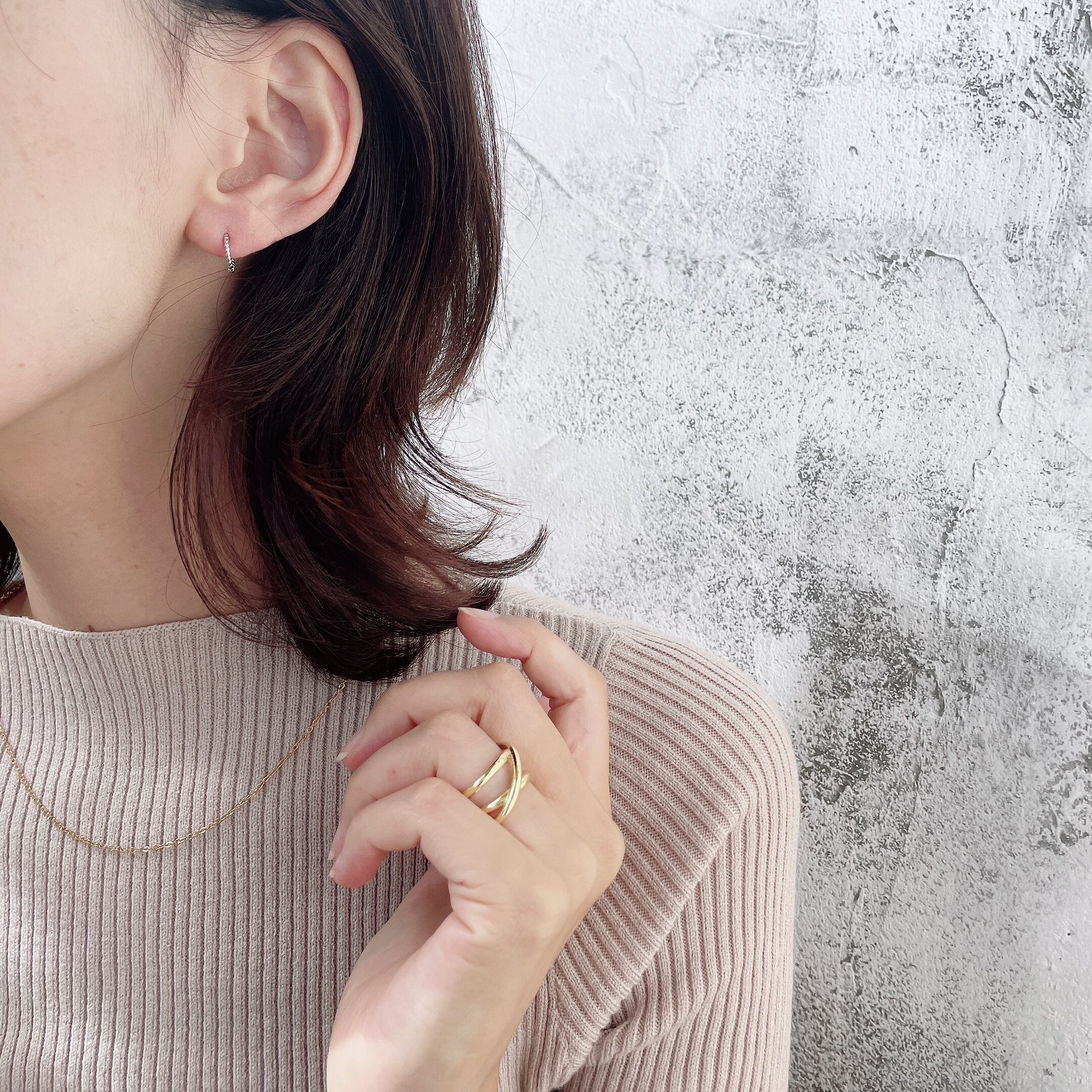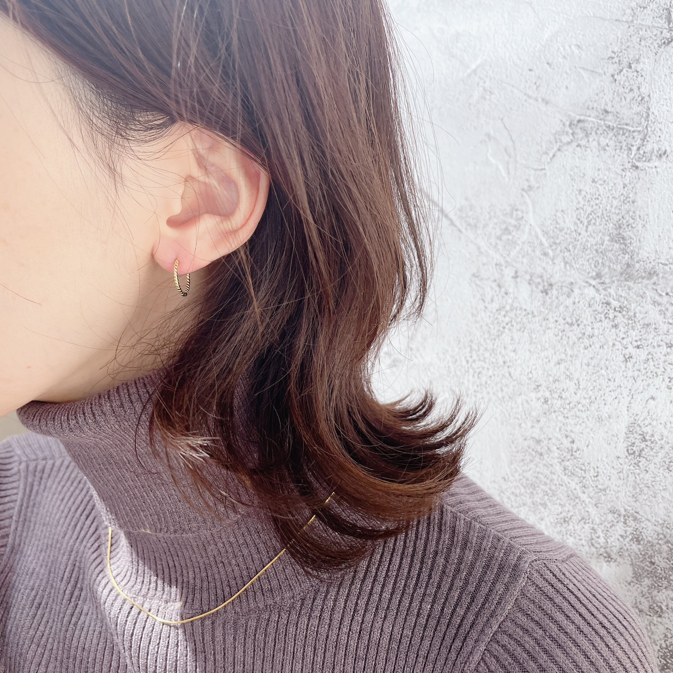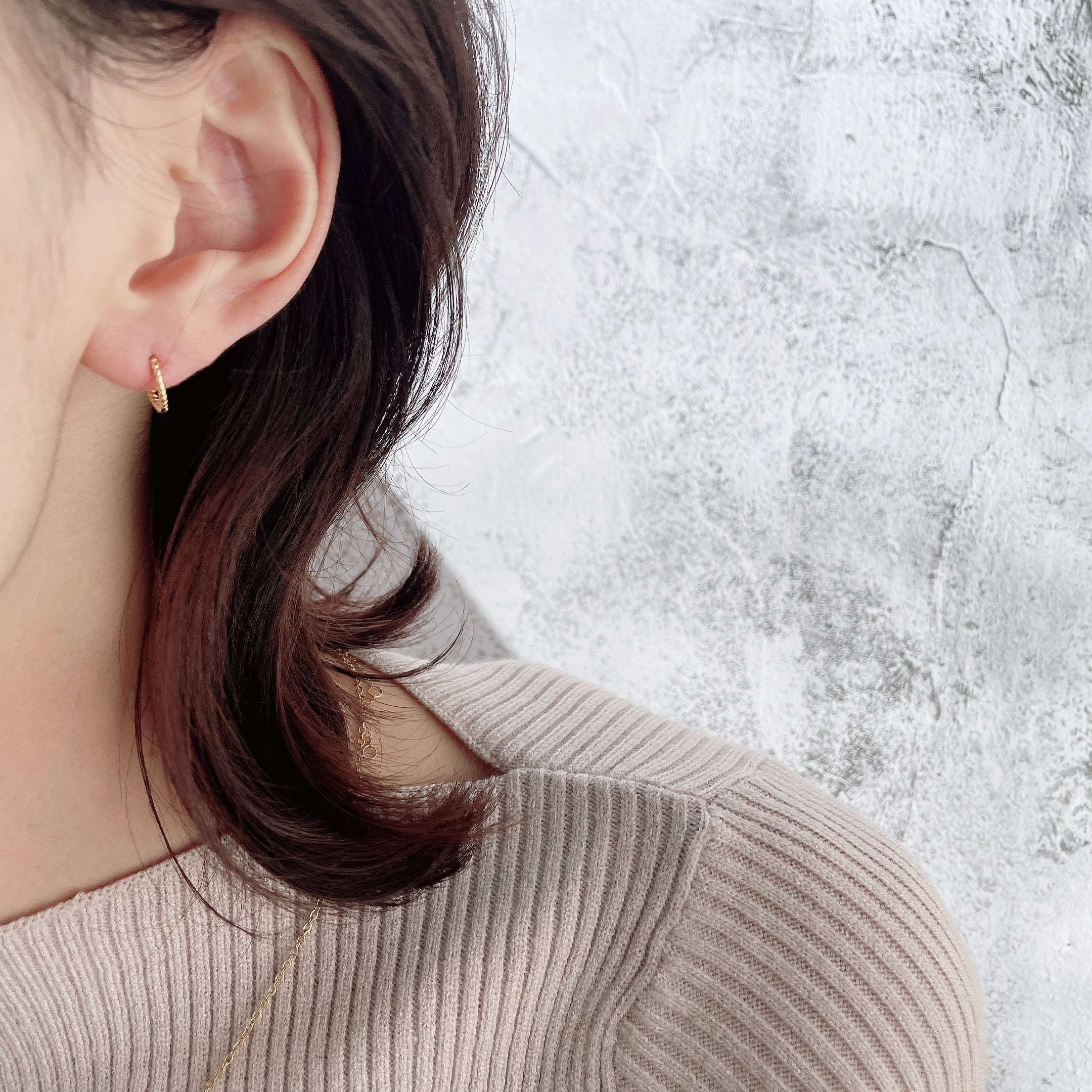 普通のフープピアスと違い、表面にツイスト模様があるだけで表情が変化し、女性らしさを感じます。