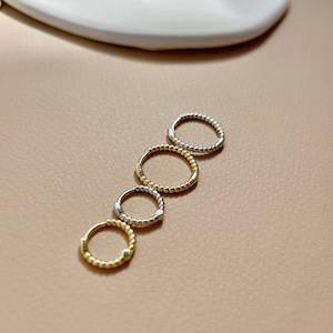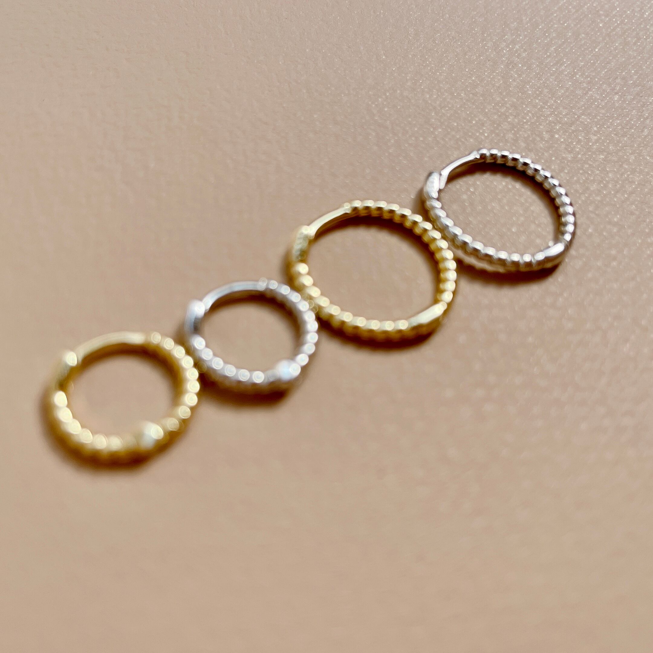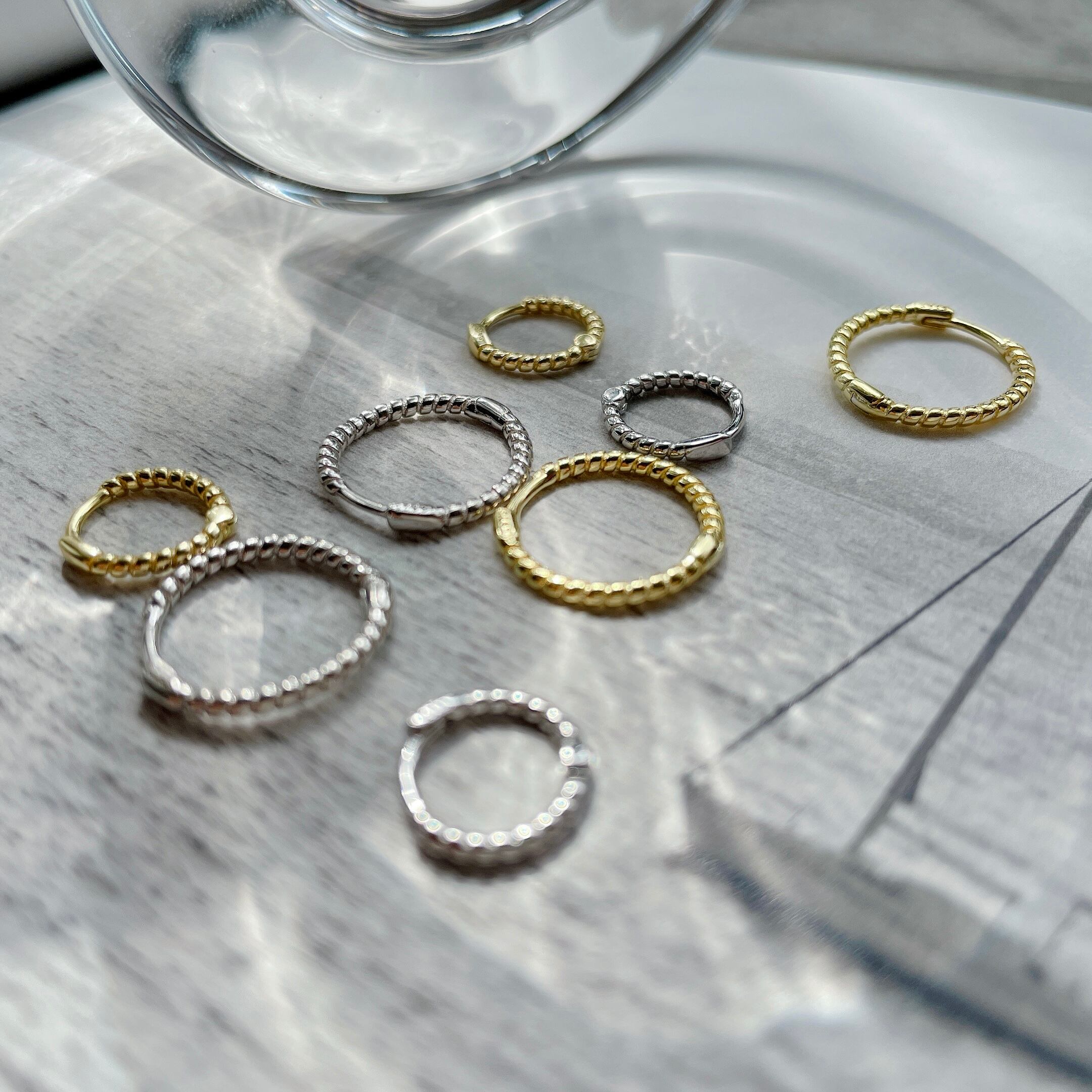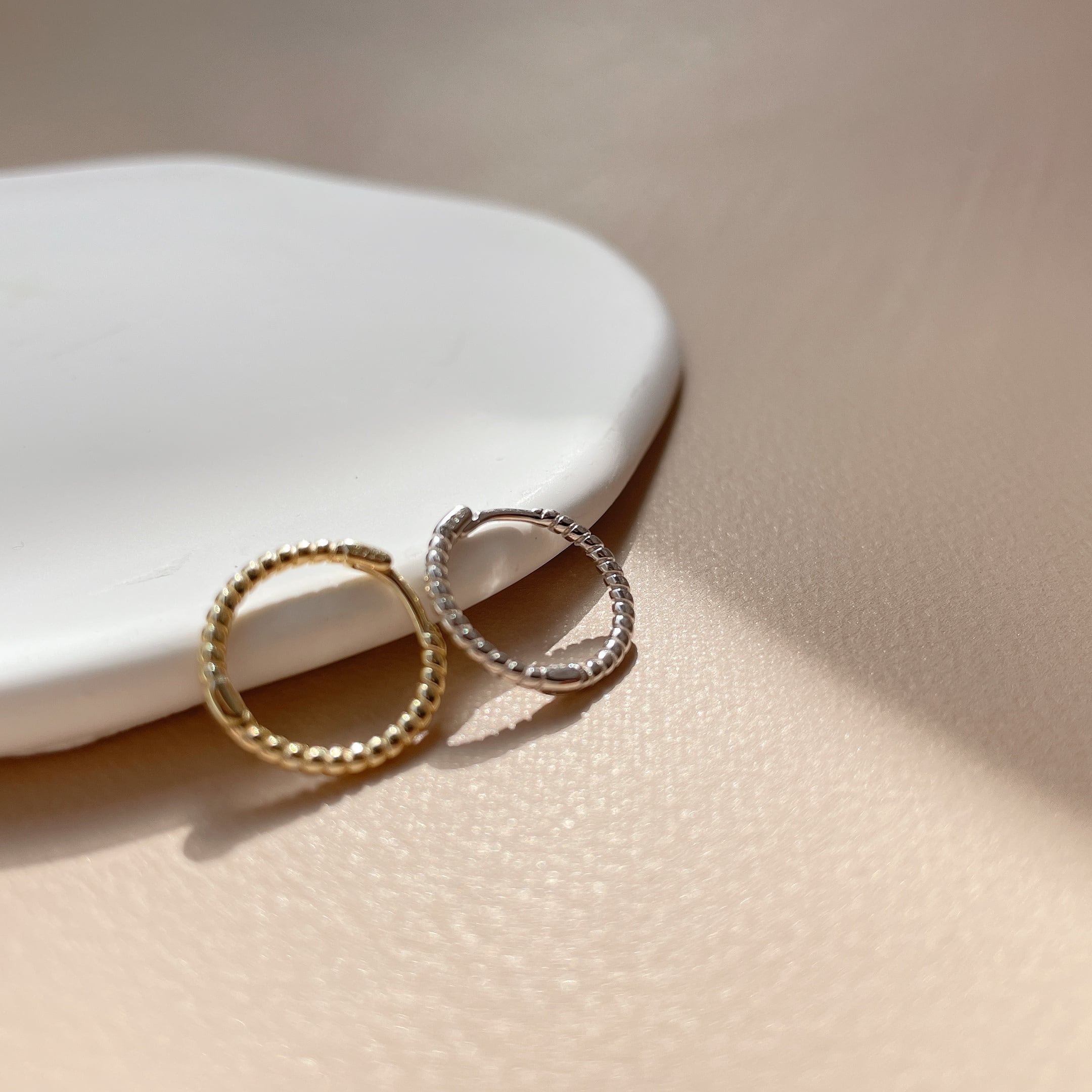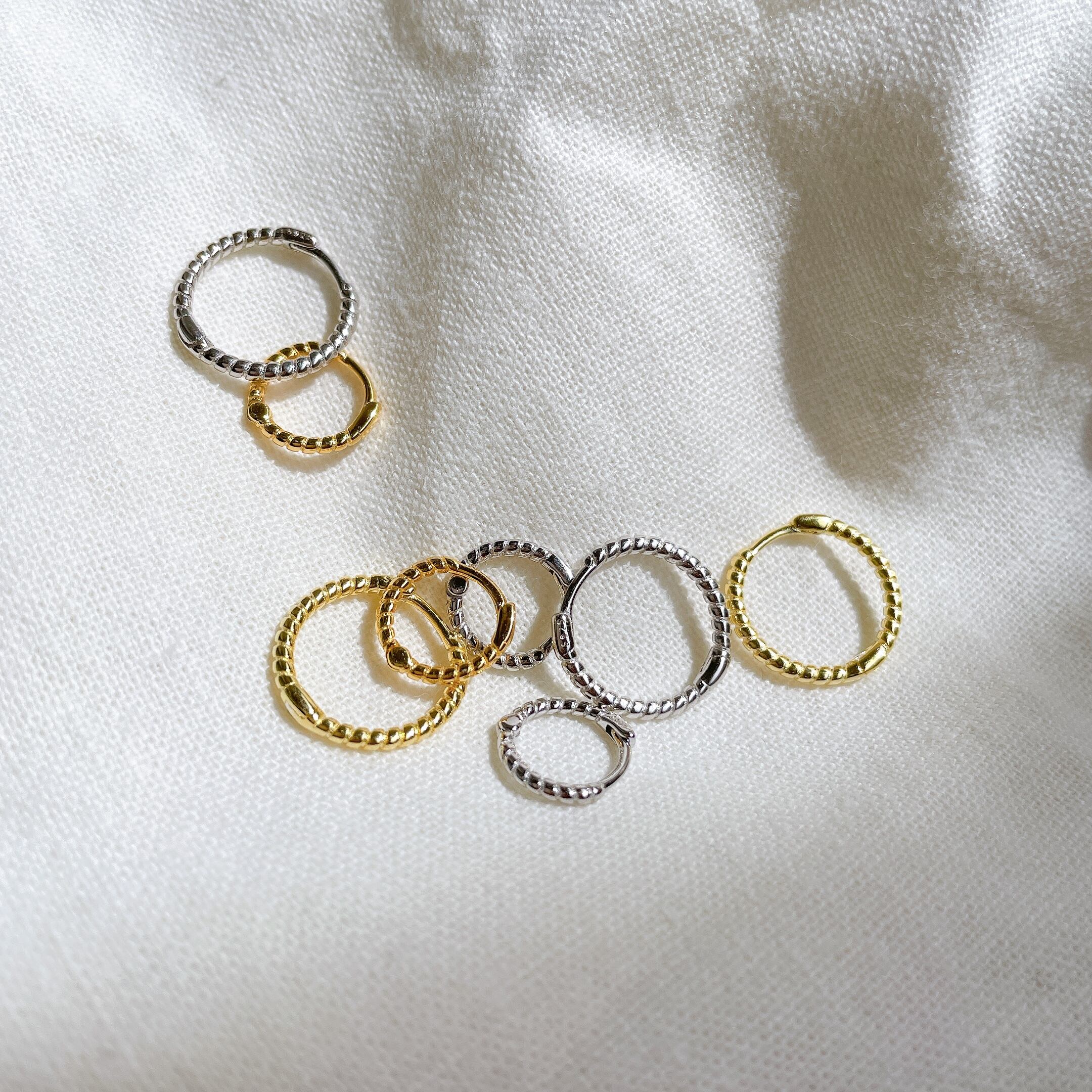 普通のフープピアスと違い、表面にツイスト模様があるだけで表情が変化し、女性らしさを感じます。