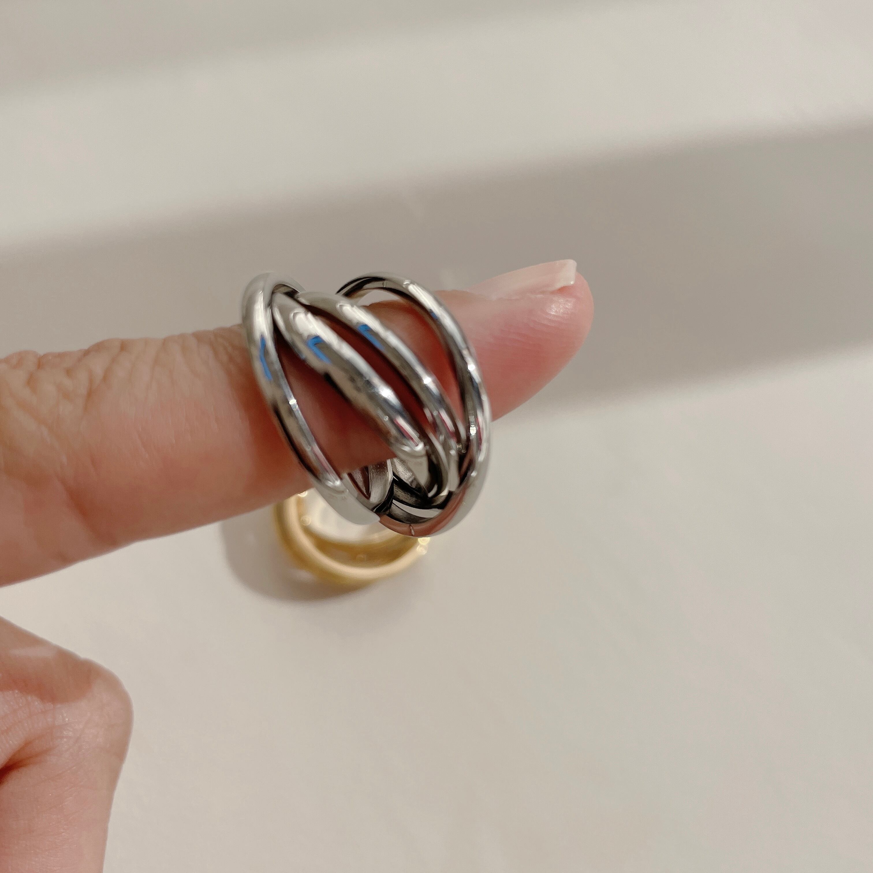 幅2mm3本、幅3mm1本、合計4本のシンプルリング連結したデザイン✳︎