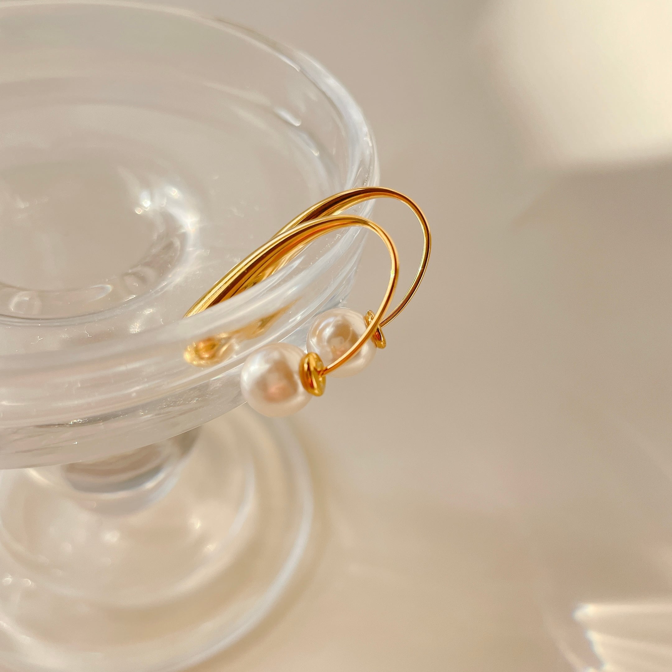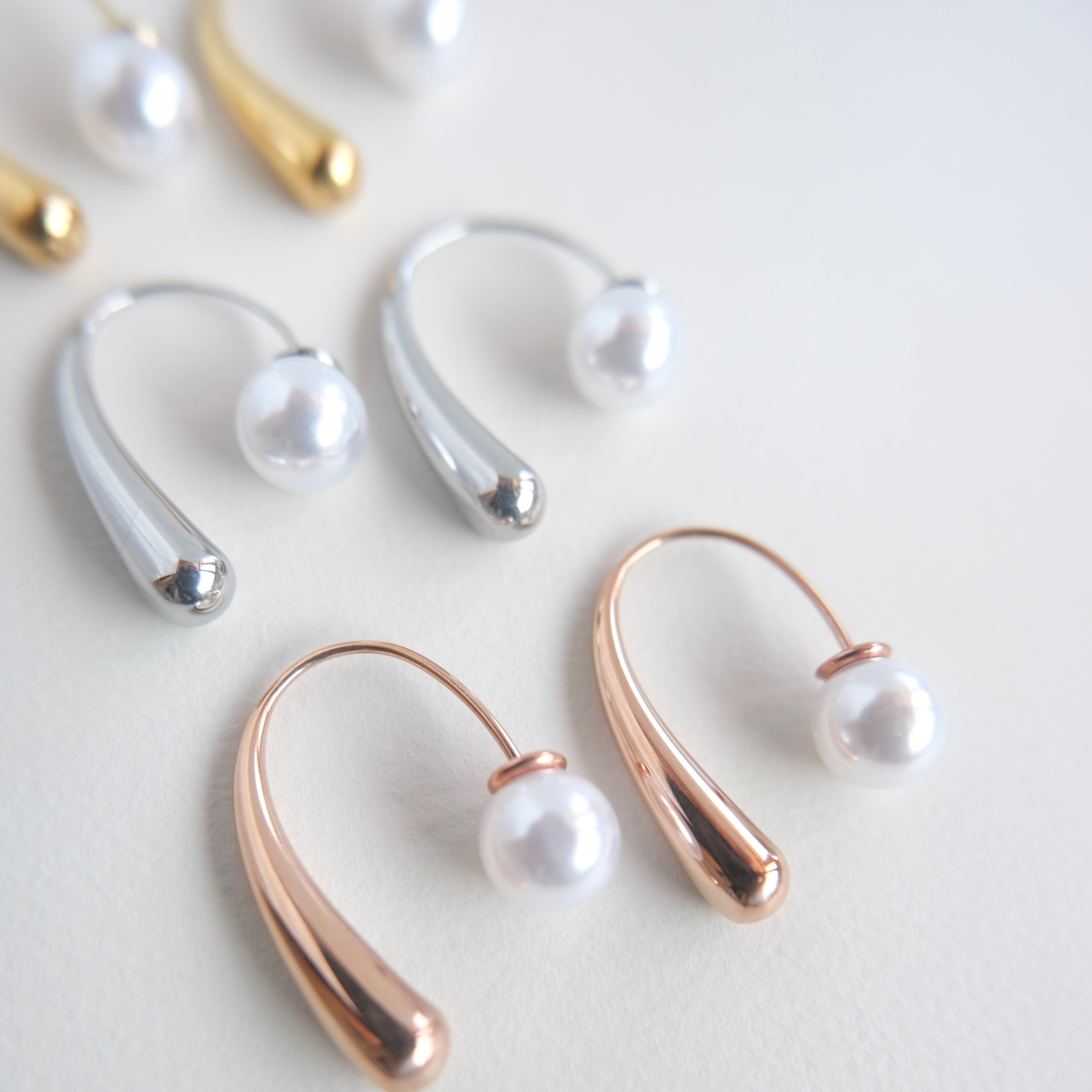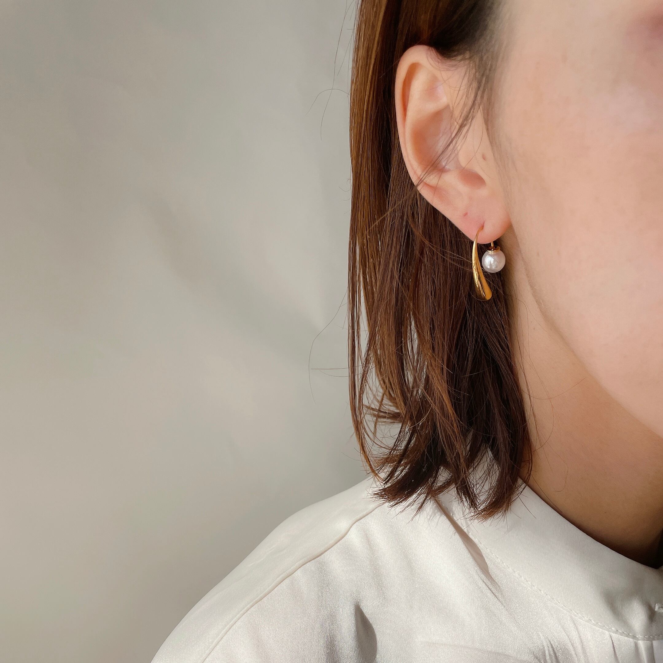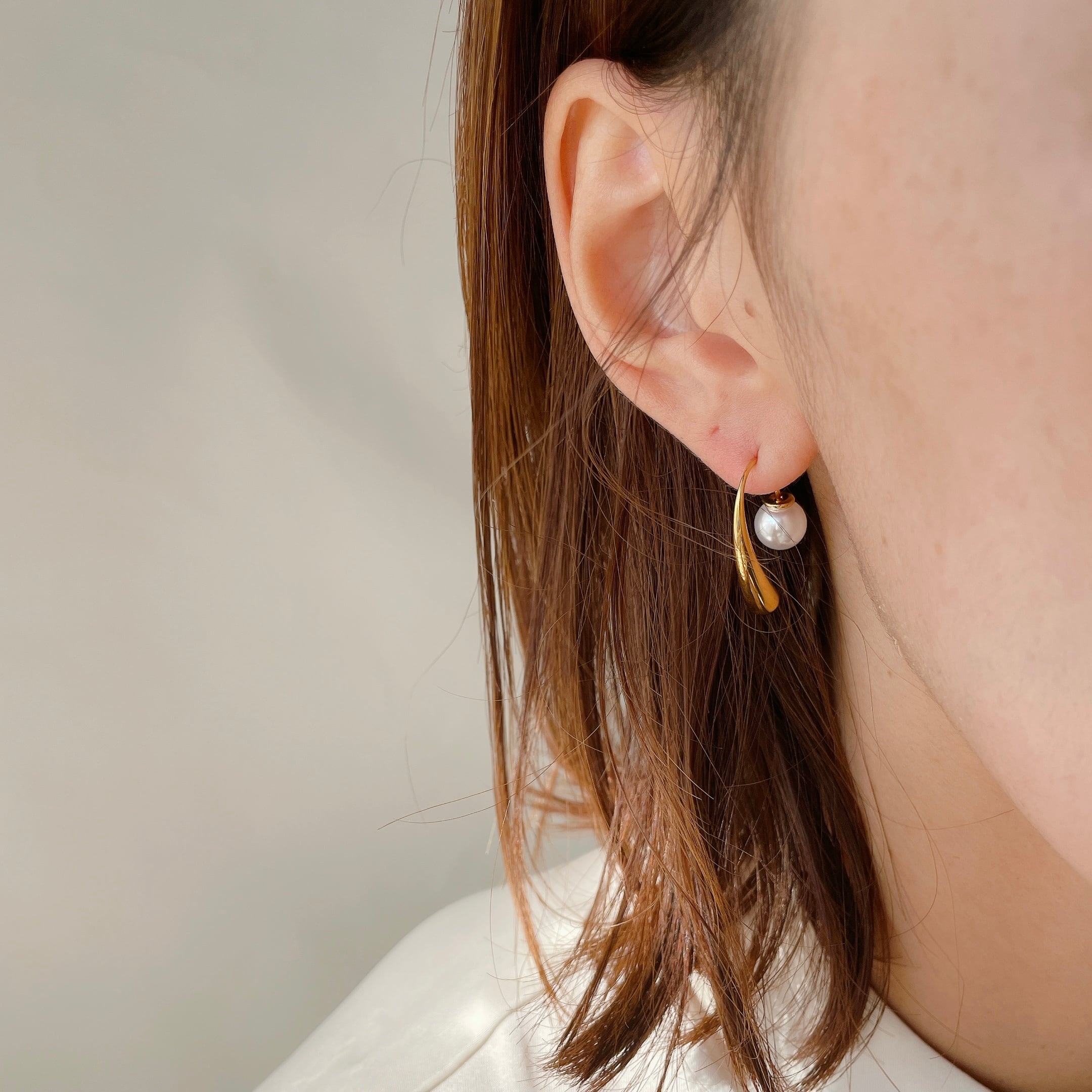 大きめドロップデザインピアスにキャッチがパールの組み合わせ✳︎