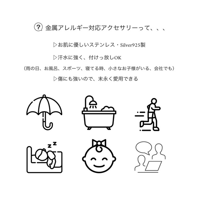 ◎お風呂や温泉、アウトドアやスポーツ時もアクセサリーは付けっぱなしにしたい