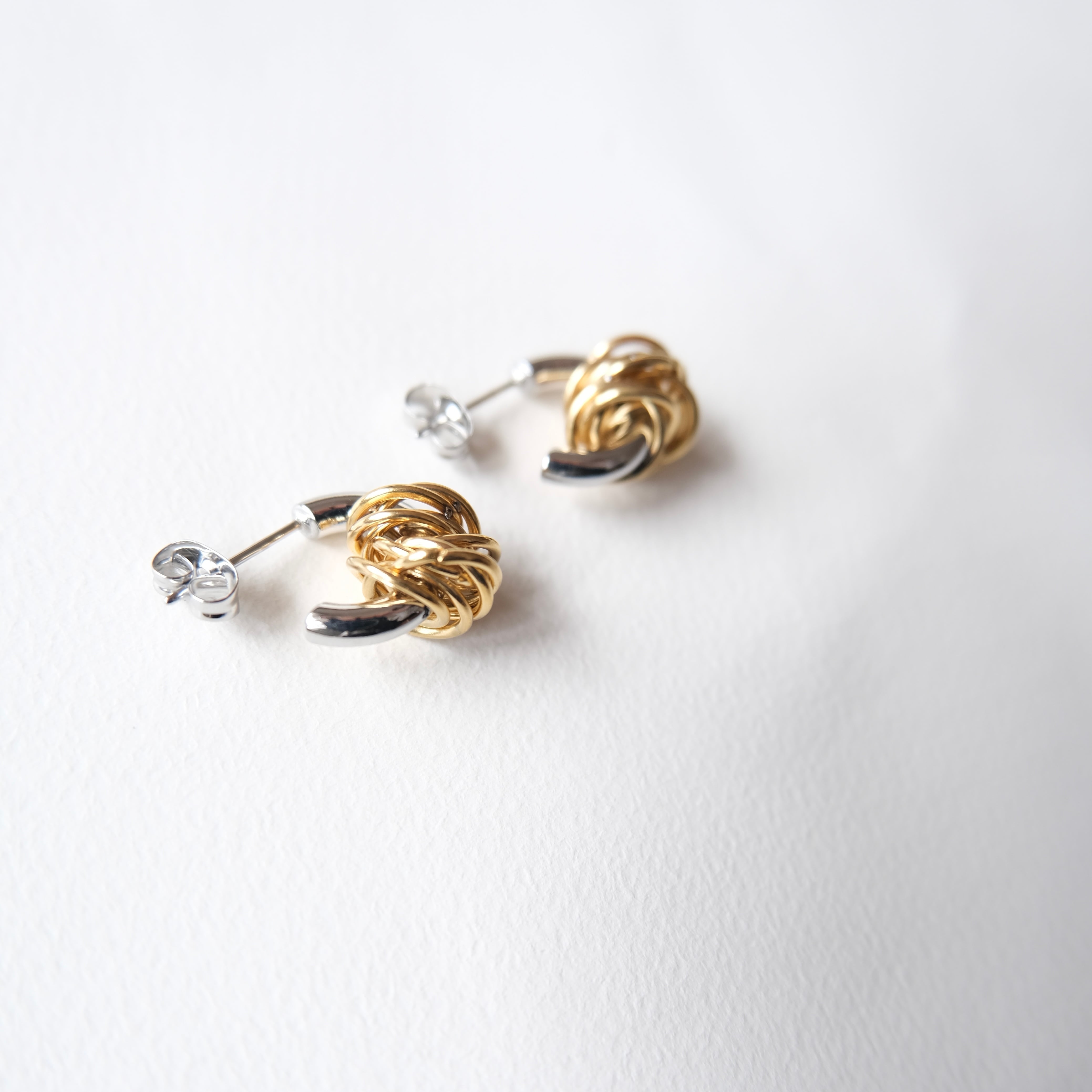 シンプルなシルバーCフープピアスに幾重ものゴールドフープが巻き付いたかのような、遊び心溢れるデザイン✳︎