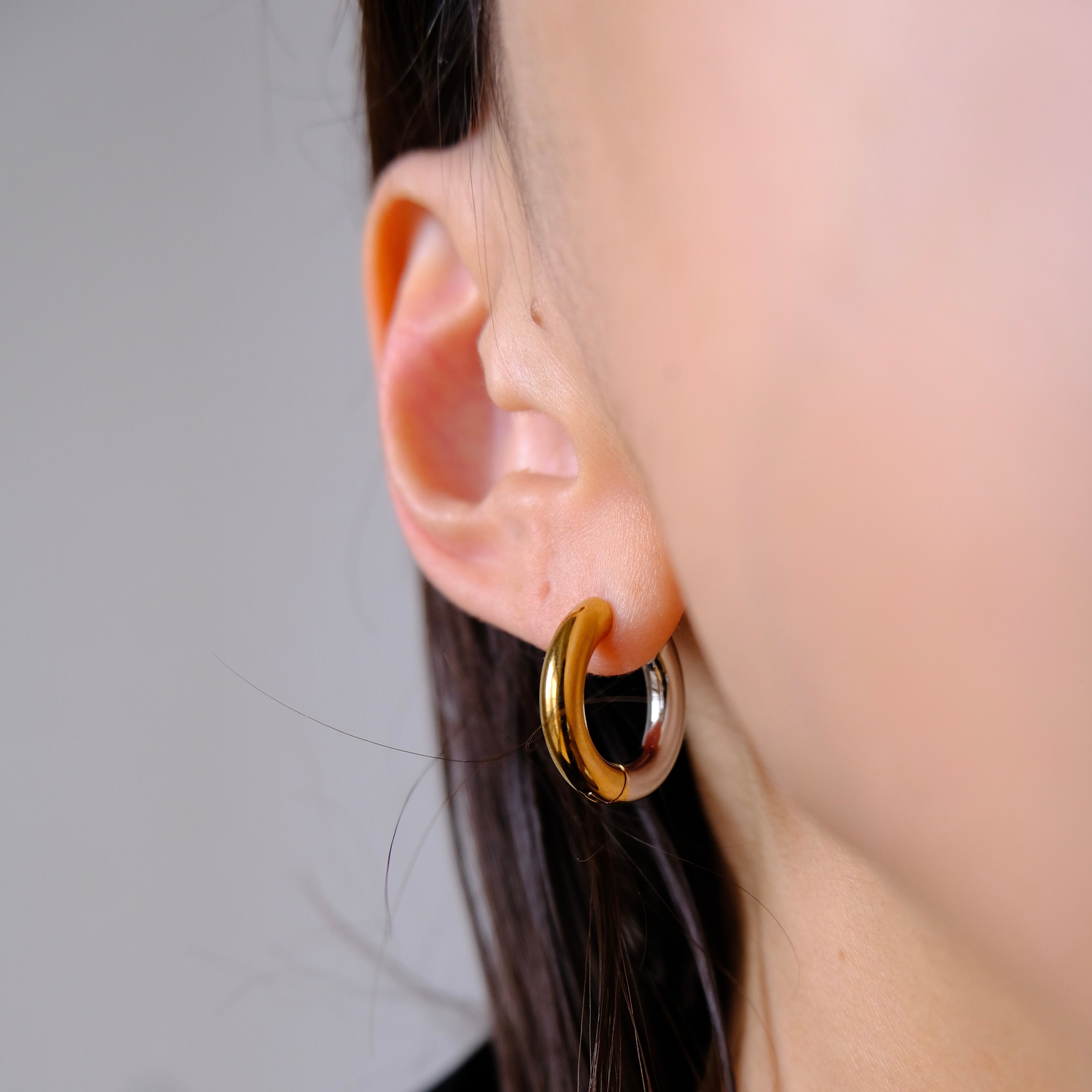 ゴールド&シルバー、バイカラーフープピアスが316L(サージカルステンレス)にリニューアルして新登場。
